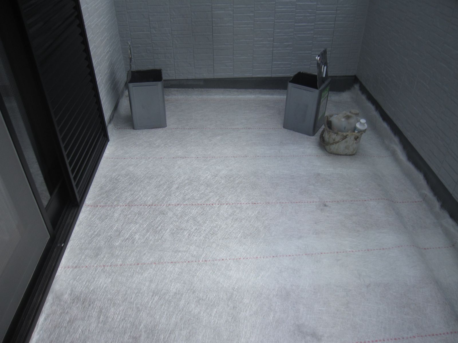 ベランダの床にガラス繊維でできたマットを貼り付け、その上からポリエステル樹脂を塗りこみ、硬化させることでプラスチックのような硬さを感じられる防水層を作る防水方法です。