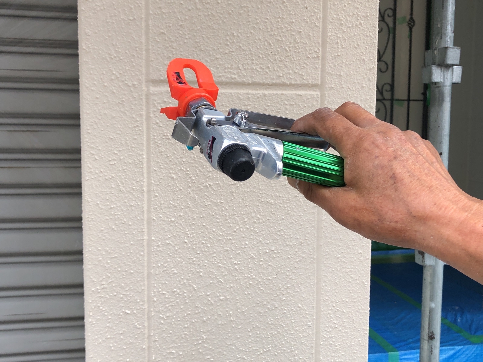 今回の名古屋市昭和区のS様邸の外壁では、吹き付けにてリシン仕上げが行われておりました。