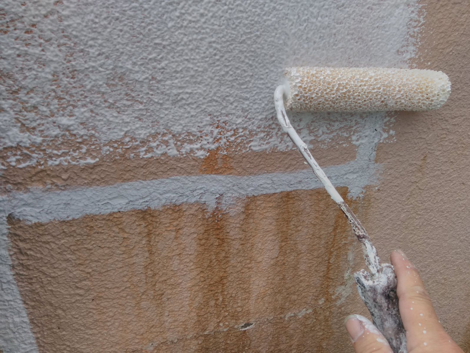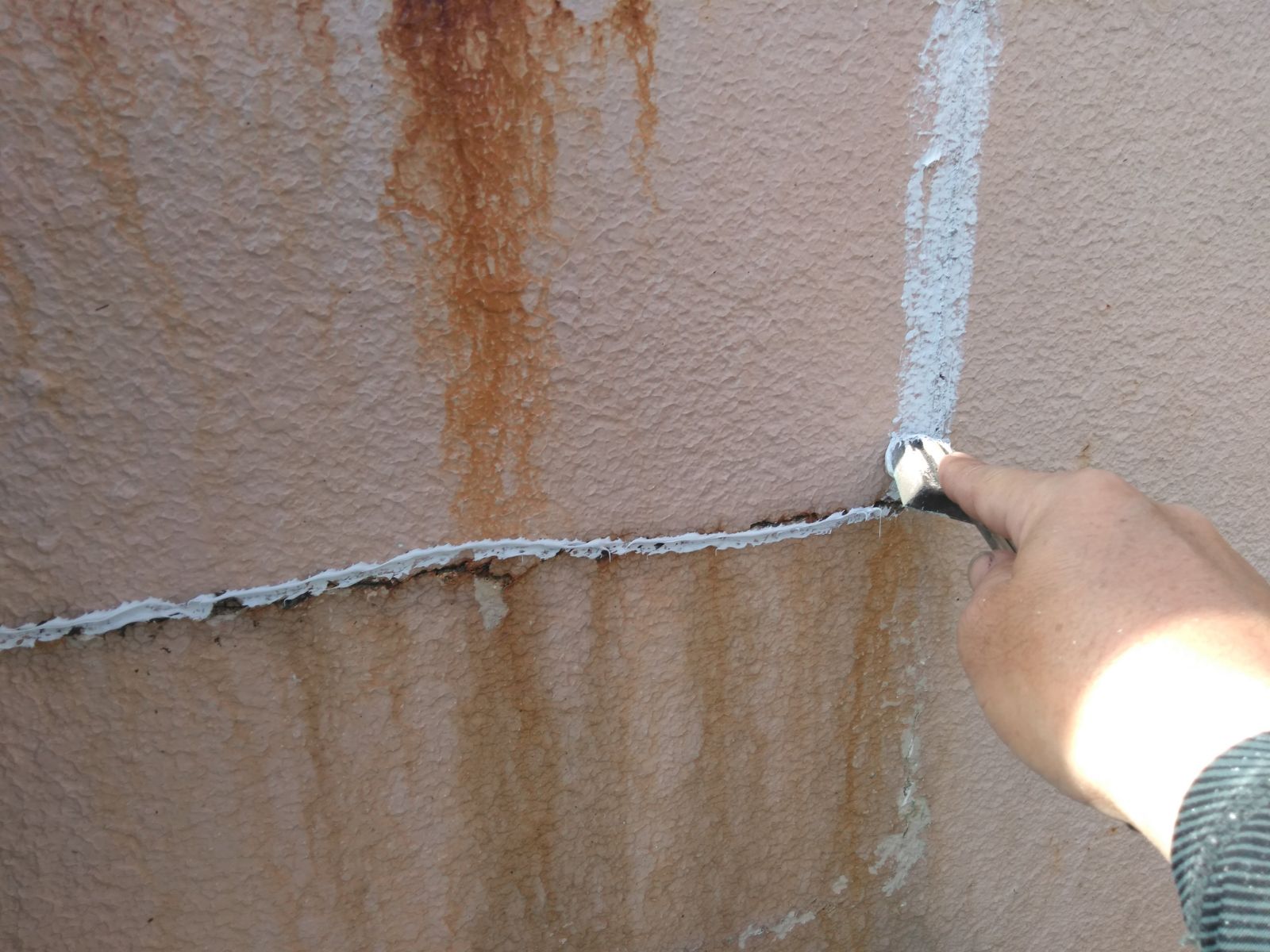 ひび割れ等が起きている場合は高圧洗浄後に、コンクリート部分に樹脂モルタルやコーキング材を注入し、割れている個所を埋めるという作業が必要となります。