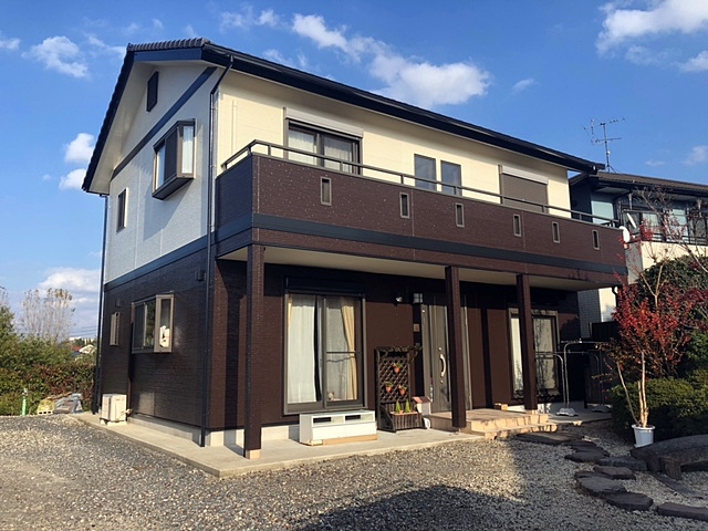 2階建ての住宅であれば、上の階を薄めの白やアイボリーで。下の階を濃いグレーや茶色で塗られている家なんかもよく見かけますし、良くそのような色の組み合わせで施工します。お家の構造を生かして、おしゃれに、より立体的に見せることができます。