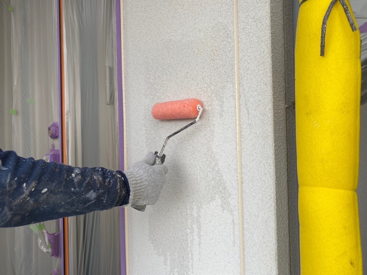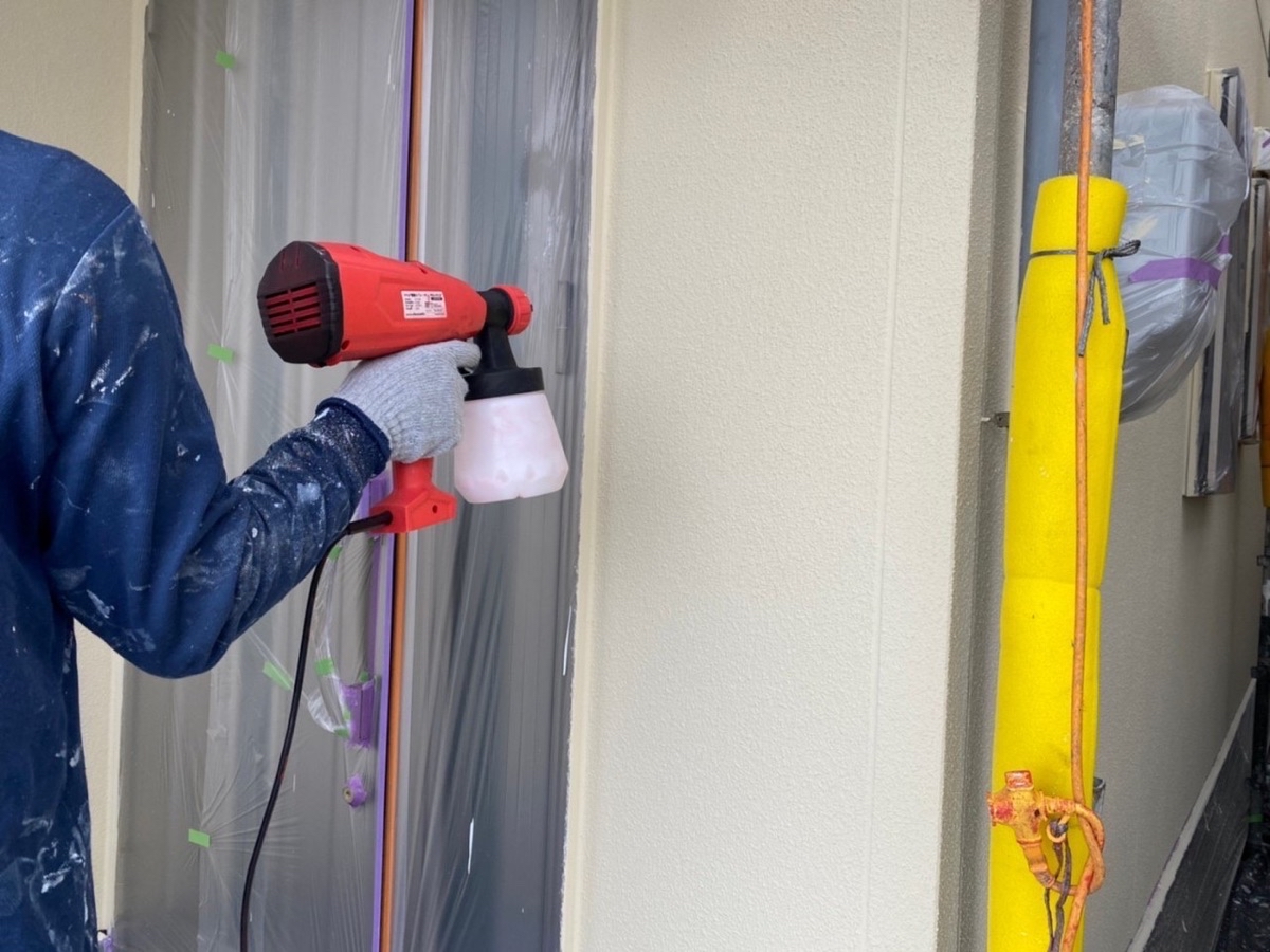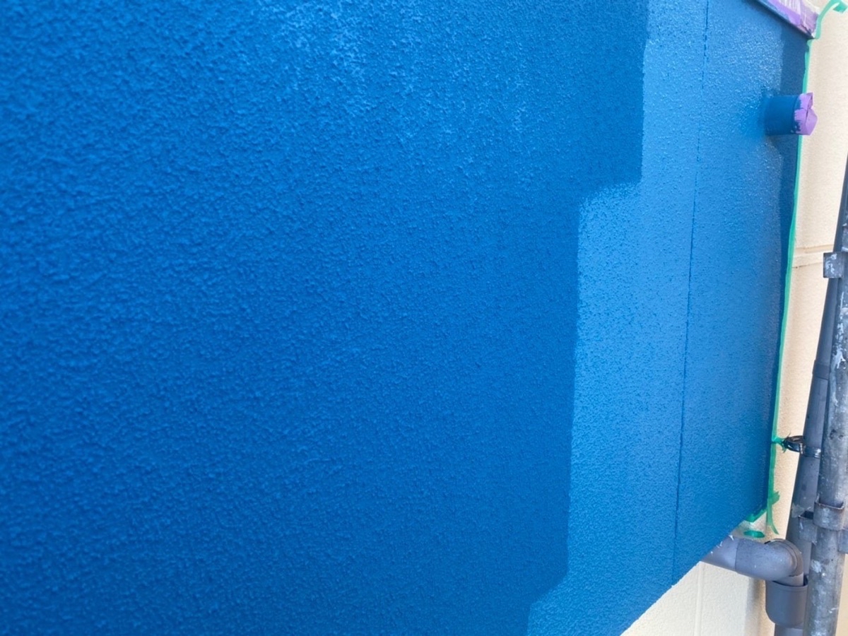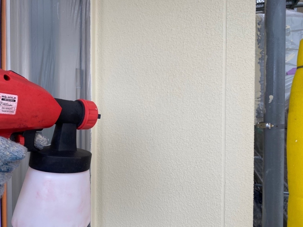 そして、今回はリシン仕上げのサイディングに使用しました。下塗り→中塗り→上塗りと塗り重ねて、しっかりと塗膜がリシン仕上げの外壁を守っていきます。