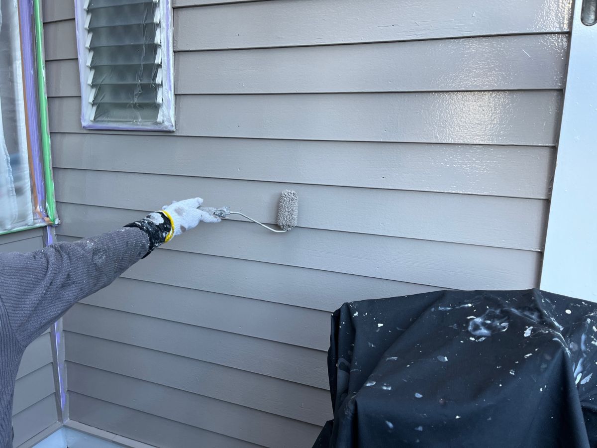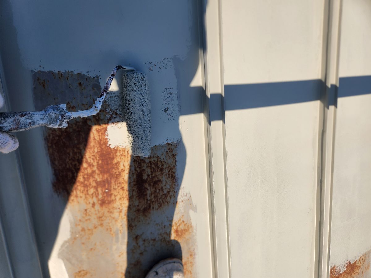 塗装作業は外壁塗装同様、下塗り→中塗り→上塗りと3回塗っていきます。錆の浸食を抑えるべく、鉄部用の下塗り材を使用し、塗装でコーティングしていきます。