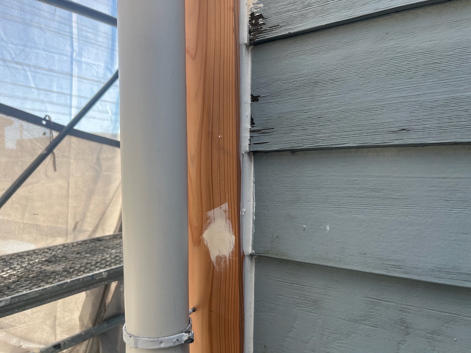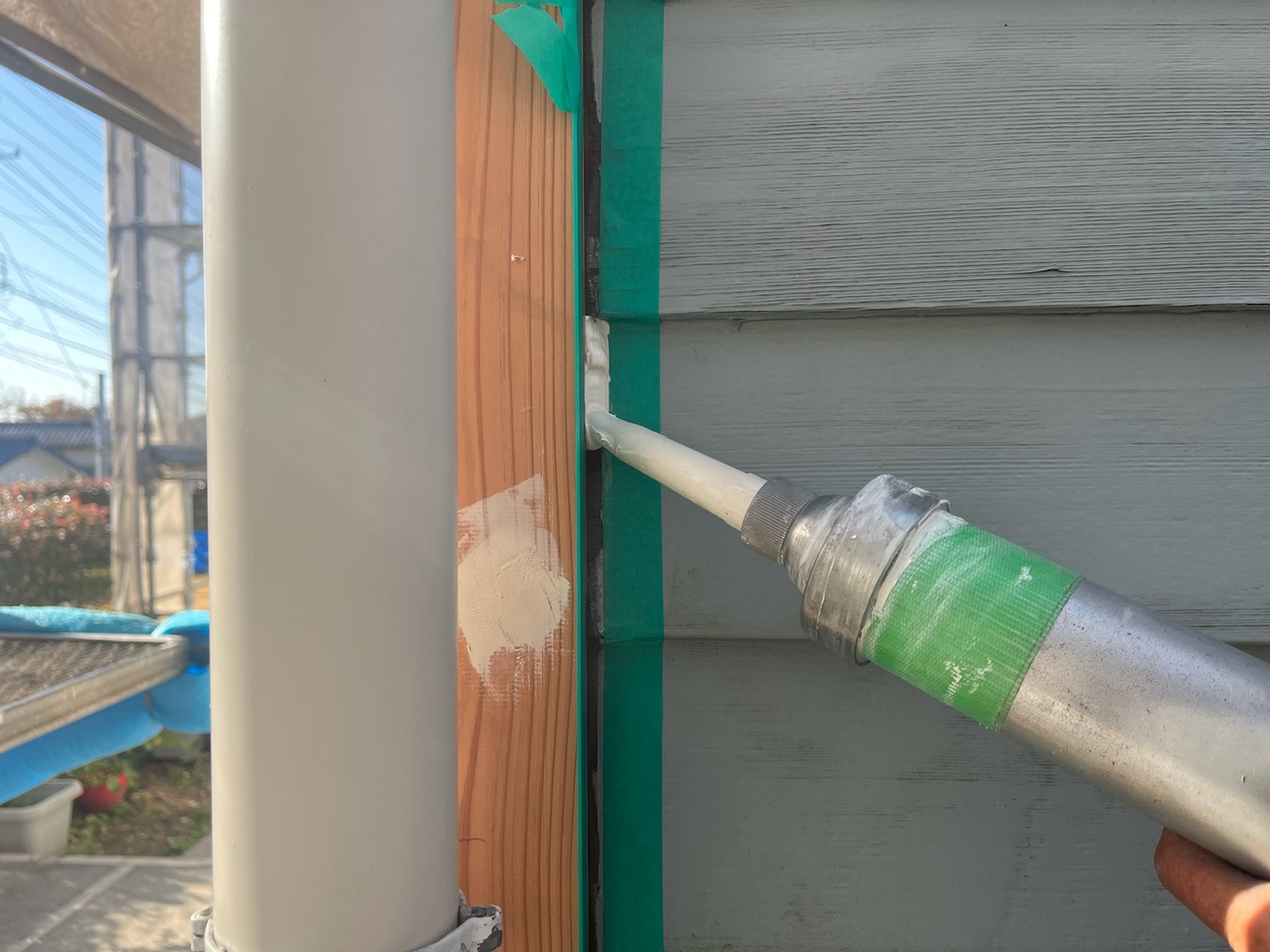 外壁張替が完了しましたので、取り合いなどの隙間部分をシーリングで埋めて水が入らないようにします。