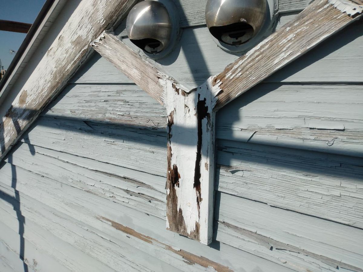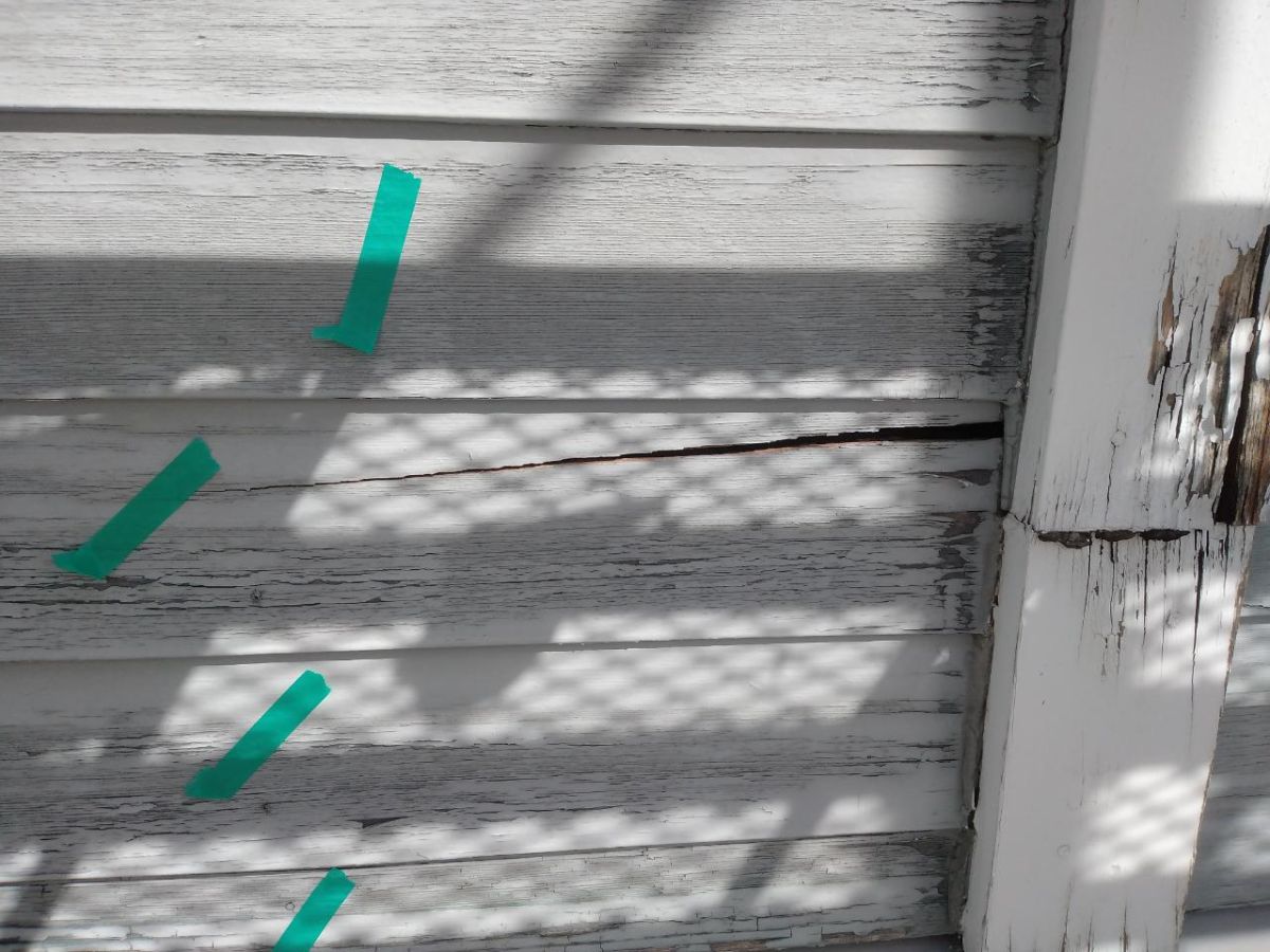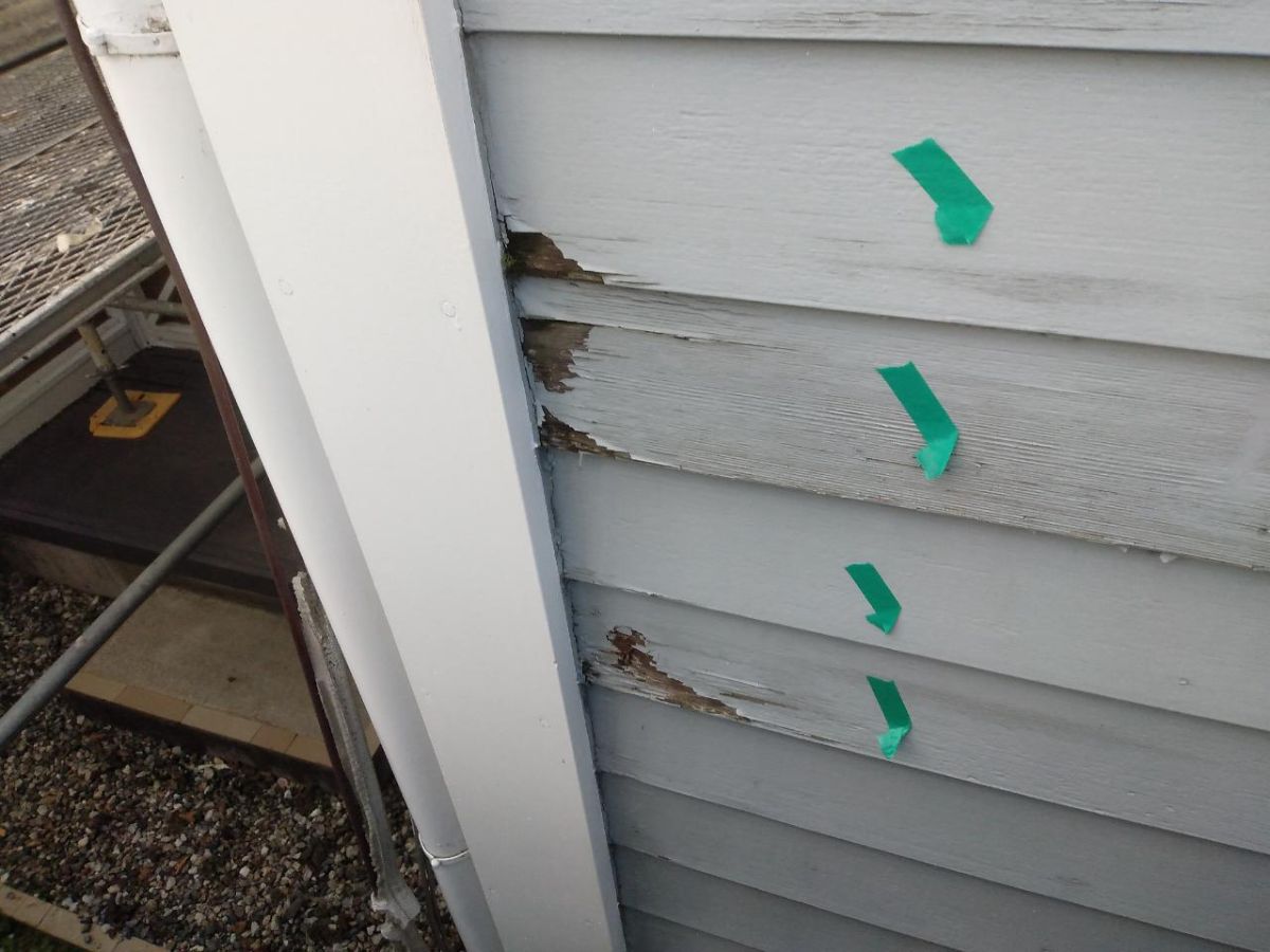 外壁材が劣化し、割れや剥がれが目立って、素地が見えている所や腐食している所が多くあります。