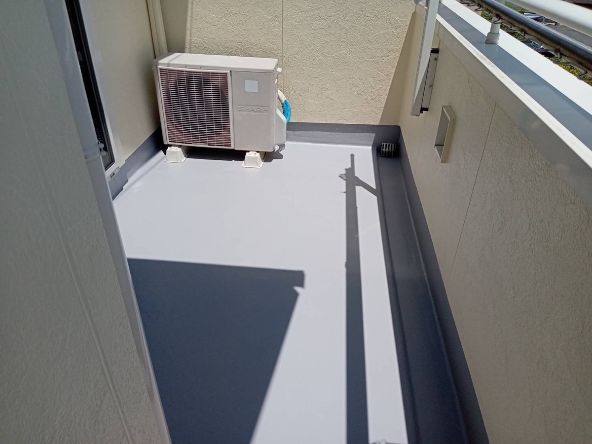 ベランダ床の防水工事(FRP防水工事)も行いました。