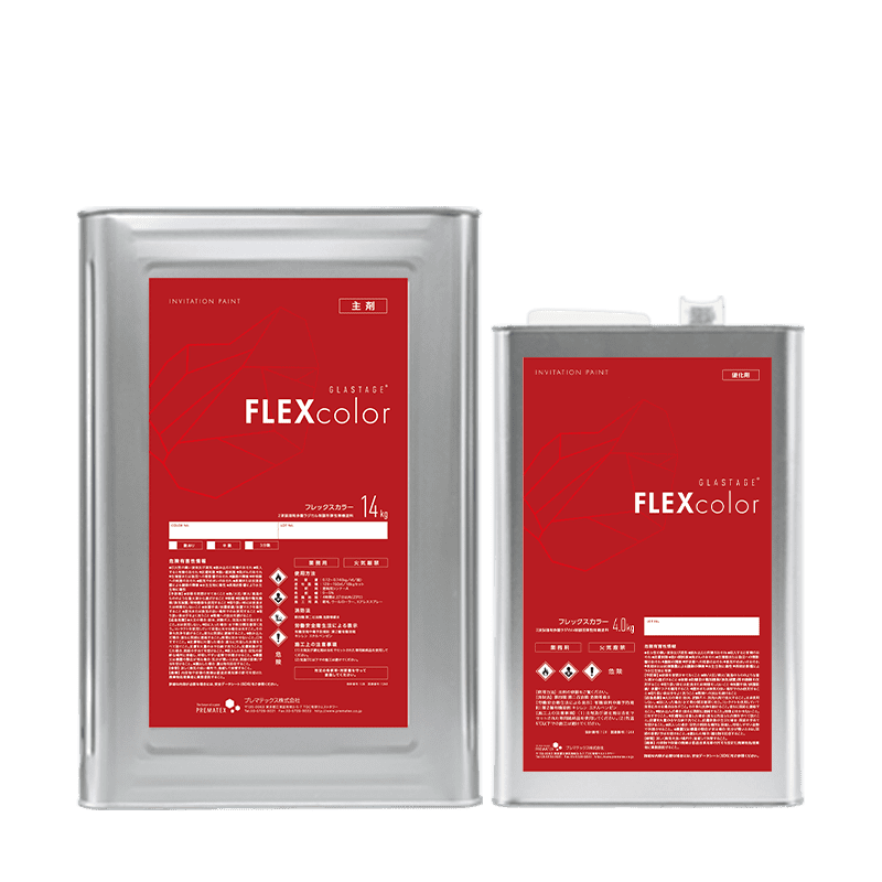 外壁にはプレマテックス社製品のグラステージシリーズ・フレックスカラー、