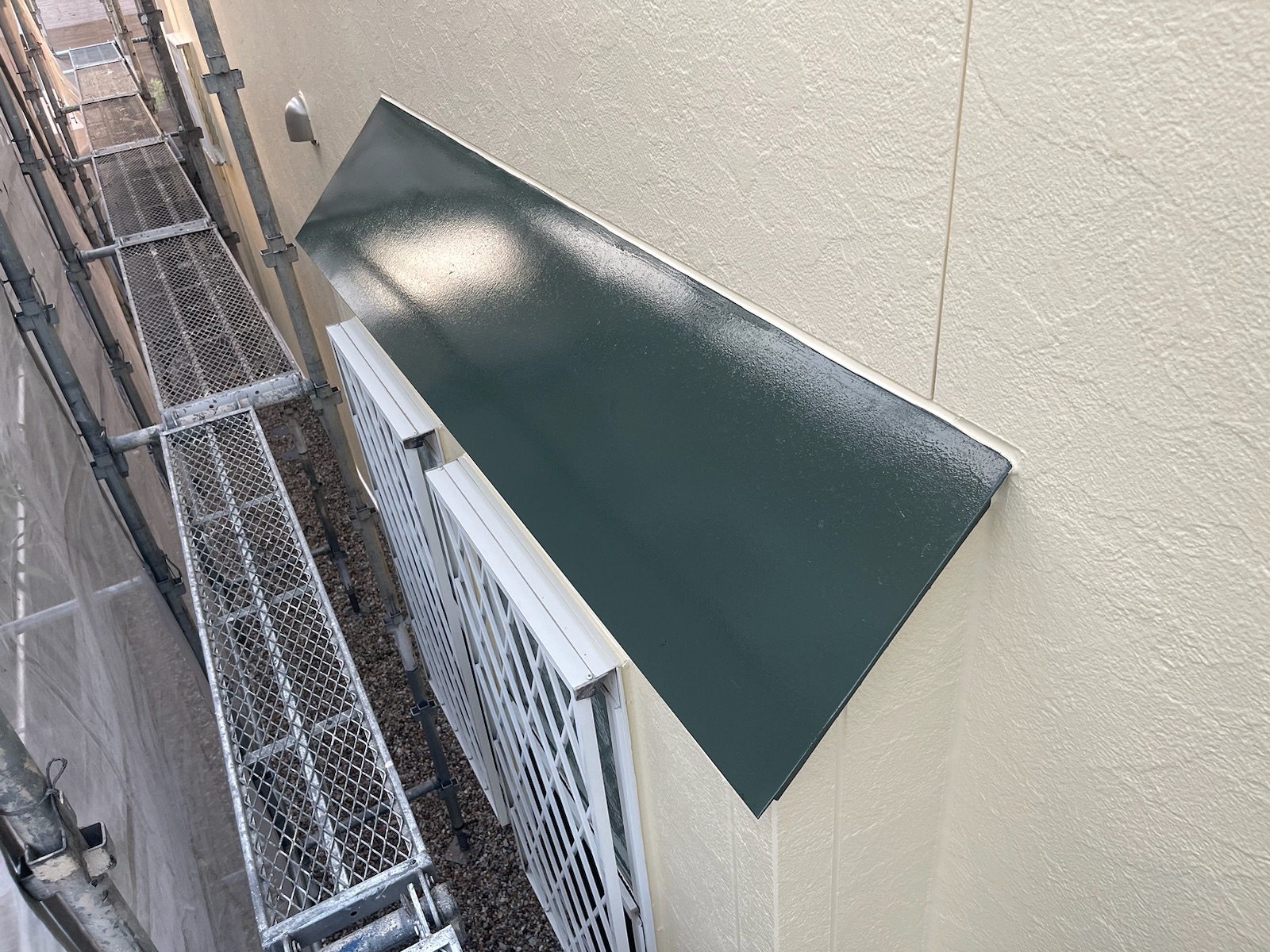 付帯部と呼ばれる雨樋や庇・破風・シャッターボックス等にも塗装工事を行っております。樋や破風なども紫外線等の影響で劣化していくので、塗装で保護することが必要な場所になります。