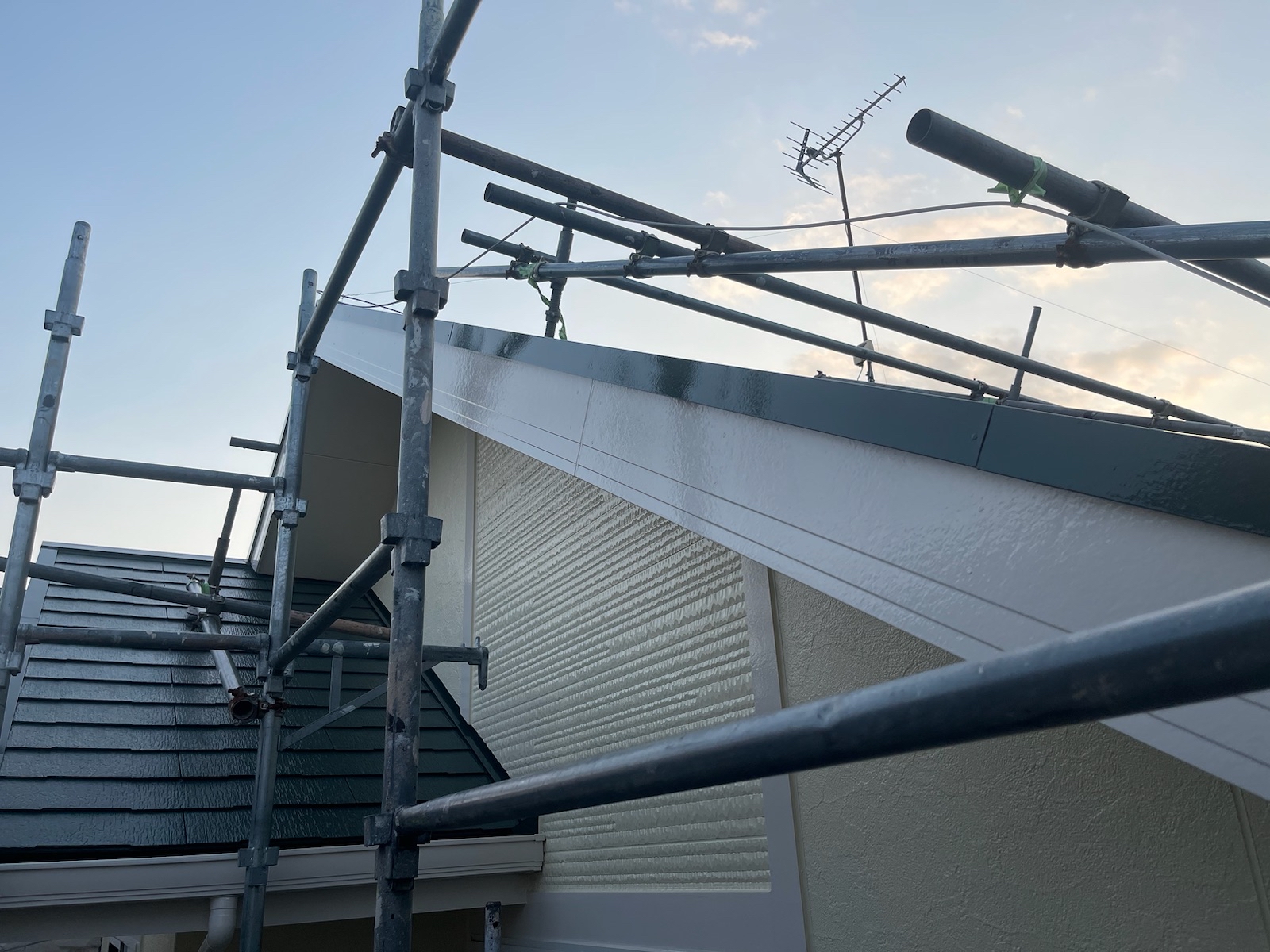 屋根のエクストラカラーに際しても、屋根という非常に太陽・雨風の影響を受ける部分ということもあり、より耐候性に優れた顔料である「耐候性強化色」にて塗装することで屋根と外壁の「耐候性の差」をなくし、塗り替えサイクルを合わせるようにしております。合わせることによって、次回の足場代金や工事代金の削減に繋がります。