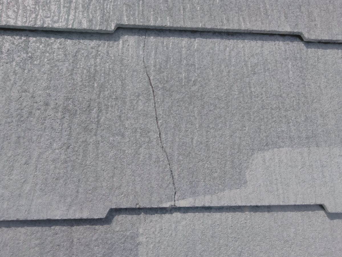 屋根材は割れる可能性がございます。落下物や台風などの被害や、塗膜が弱くなって直接屋根材に雨が当たってしまうことも割れや欠けが起きる原因です。