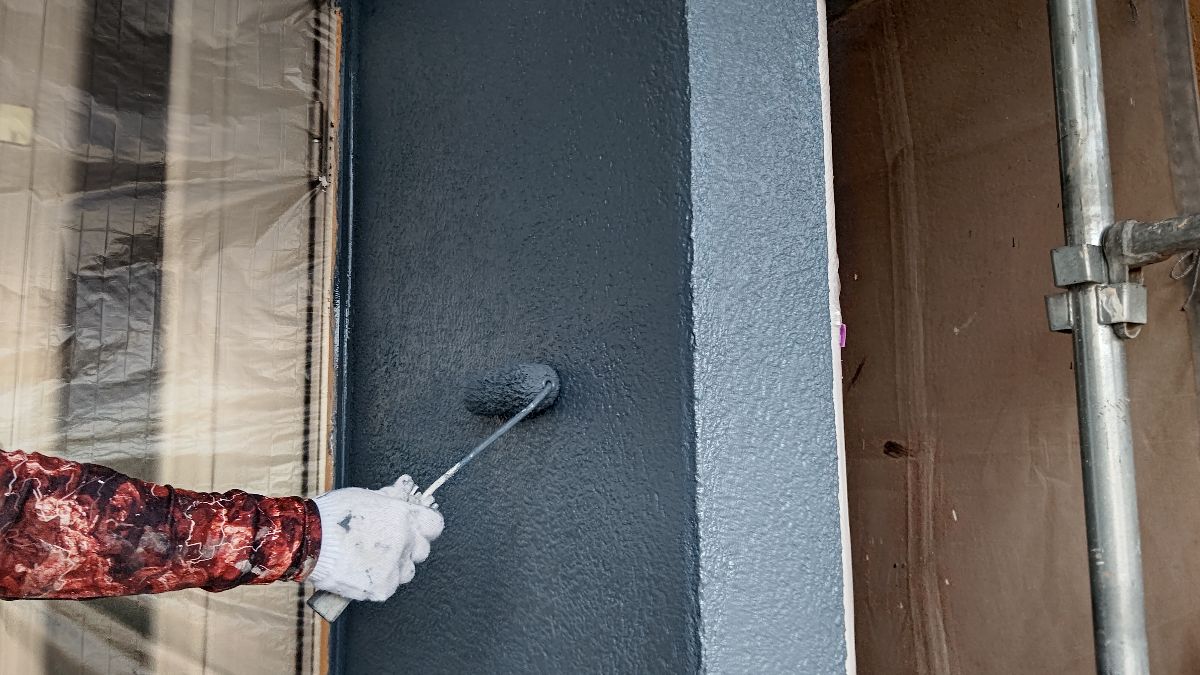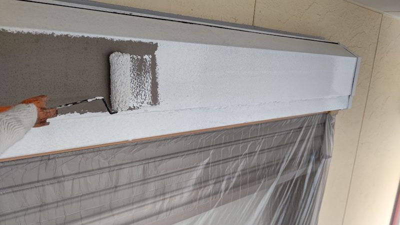 屋根の板金部分や、水切り・シャッターボックスなどの鉄製の部分に関しては、塗装前にケレン作業(塗料が密着しやすくなるよう素地を整える)を行ってから錆止め効果のある下塗り塗料を使用して、下塗り→中塗り→上塗りと仕上げております。