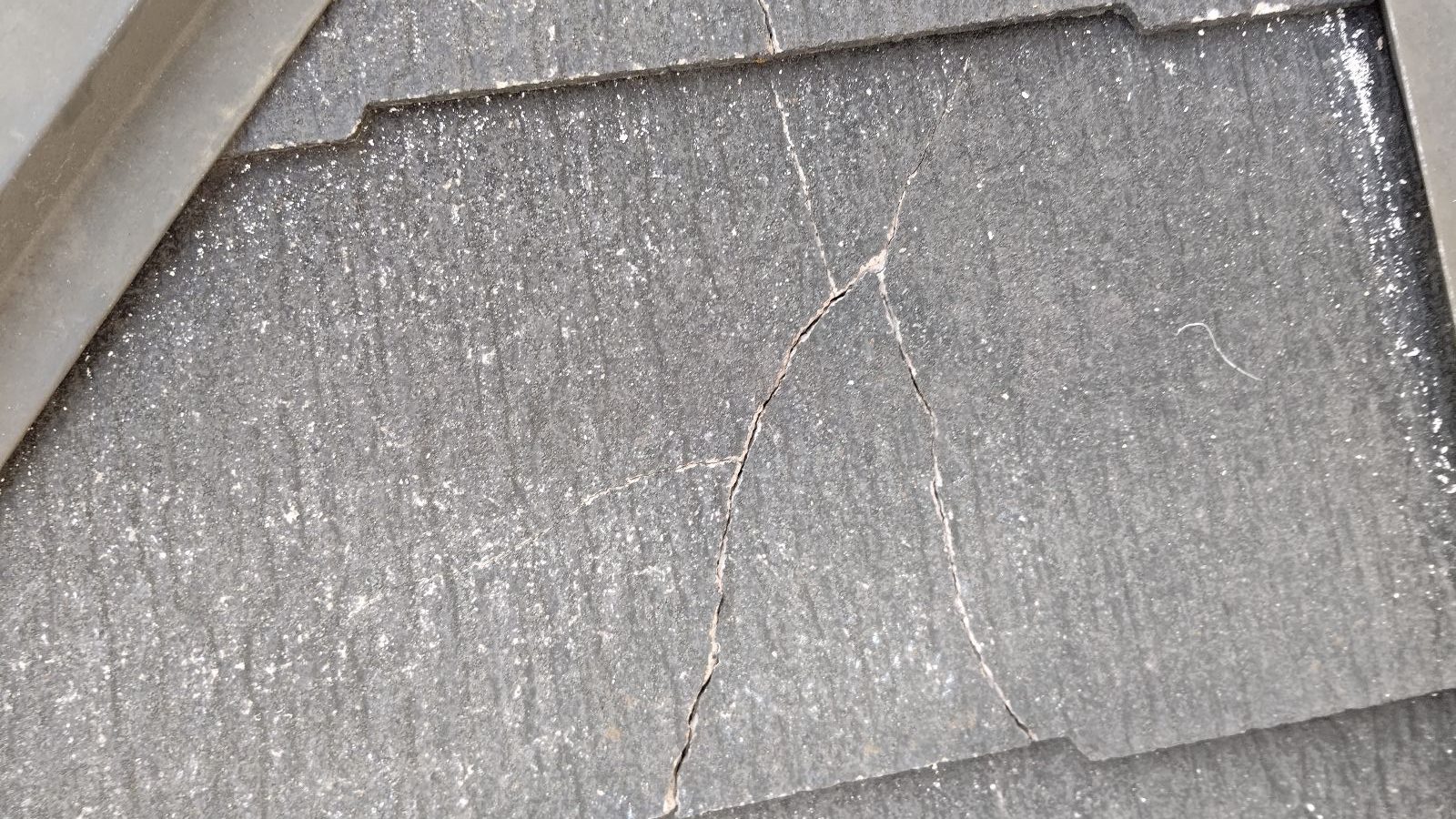 塗膜劣化により撥水効果がなくなり、雨が降った時に屋根が水分を含み膨れます。雨が上がり、乾燥して屋根材が縮みます。その膨れと縮みを繰り返すことで屋根材が割れるといった事が考えられます。割れた屋根をそのまま塗装するのではなく、補修を行い、割れた隙間を埋める補修が大事になります。