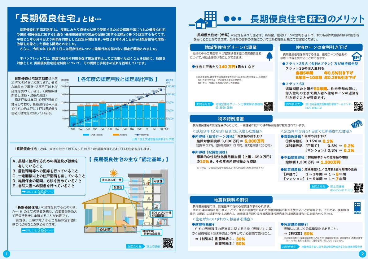 一般社団法人 住宅性能評価・表示協会が発行している認定制度のパンフレットです。