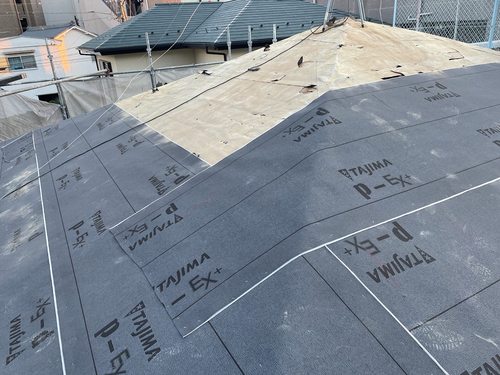 新築では一般的な「アスファルトルーフィング」が使用されていることが多いようですが、安価な分、期待耐用年数も長くはないため、瓦のように長期間長持ちする物には不向きかと存じます。