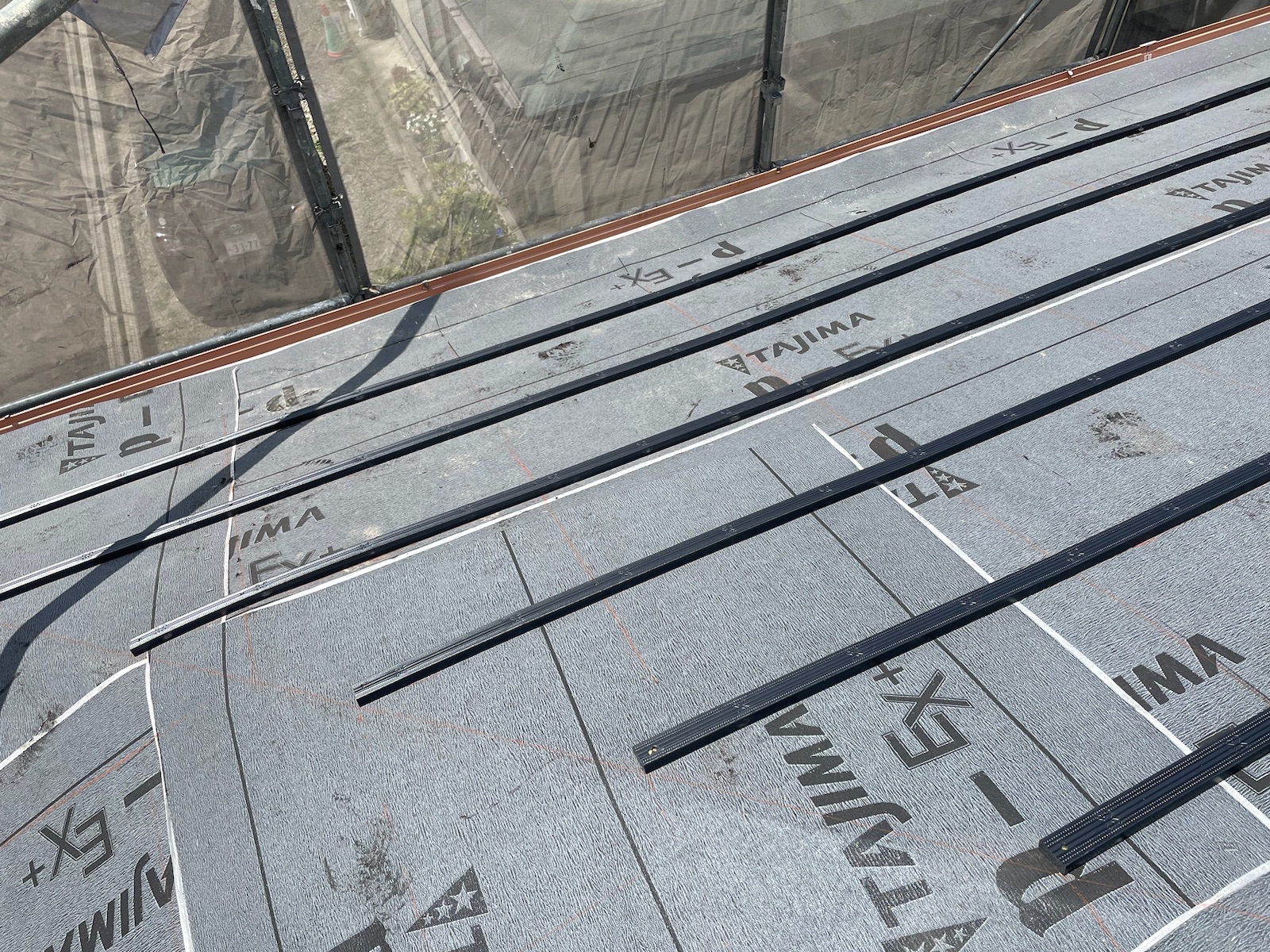 ビスで止めていくのですが、瓦桟に止めていくので、ルーフィングシートに穴が開くことなく施工ができます。