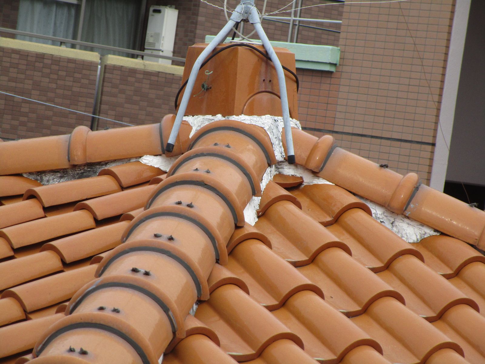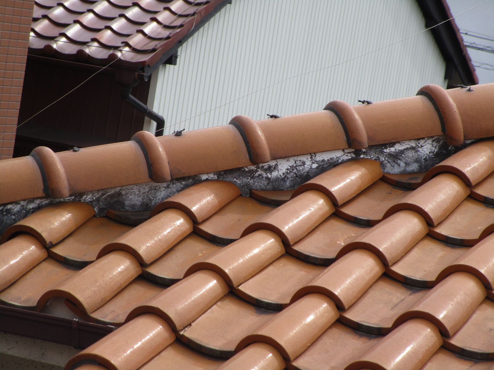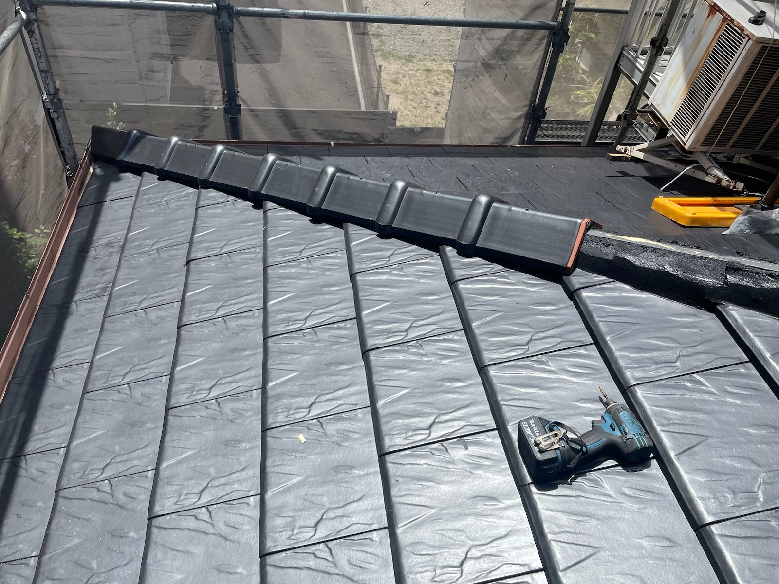 棟瓦や、ケラバ瓦の取り付けを行います。