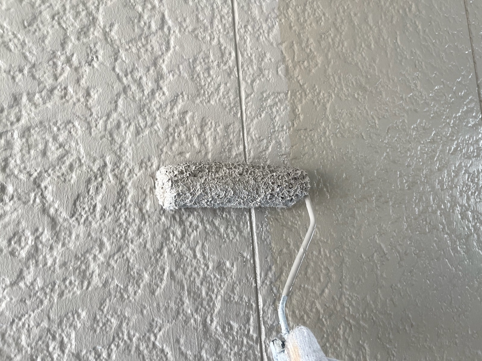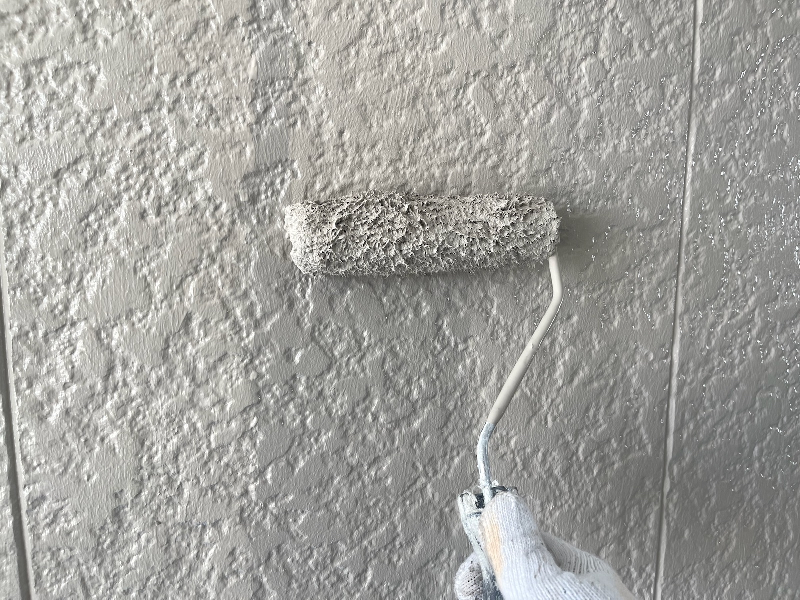 塗膜の密着効果を高める専用の下塗り材を使用して下塗り→中塗り→上塗りと塗装を重ねていき、外壁の塗装を仕上げます。