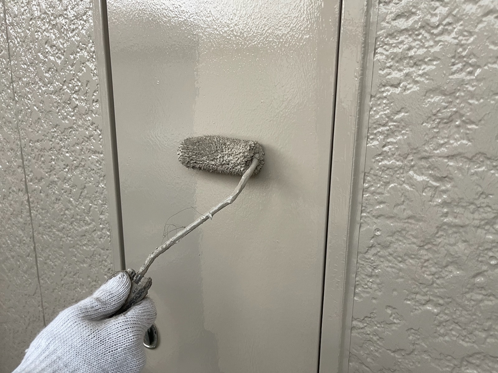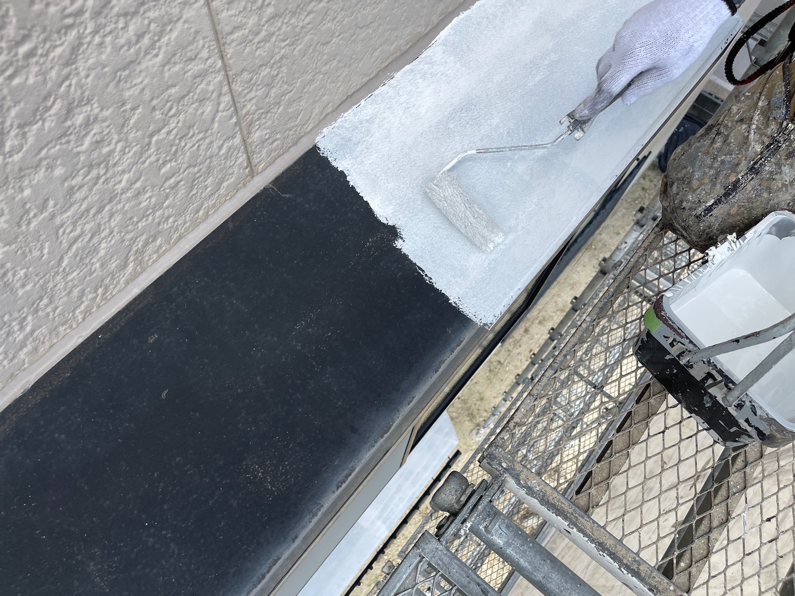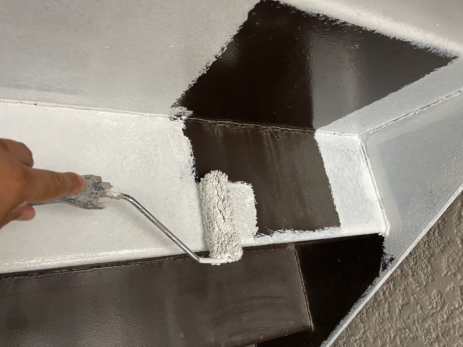 その後、錆止め効果のある下塗り材を使用して下塗り→中塗り→上塗りと塗装を重ねていき、鉄部の塗装も仕上げます。
