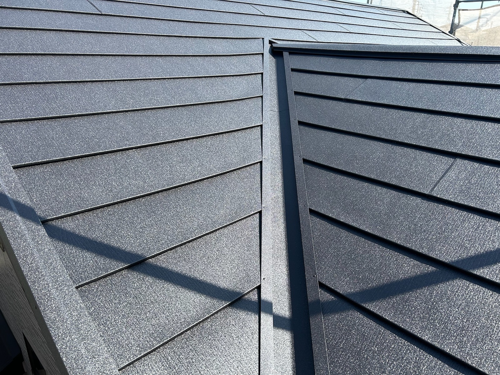 次に、金属製の屋根材、役物(板金部材)を設置します。