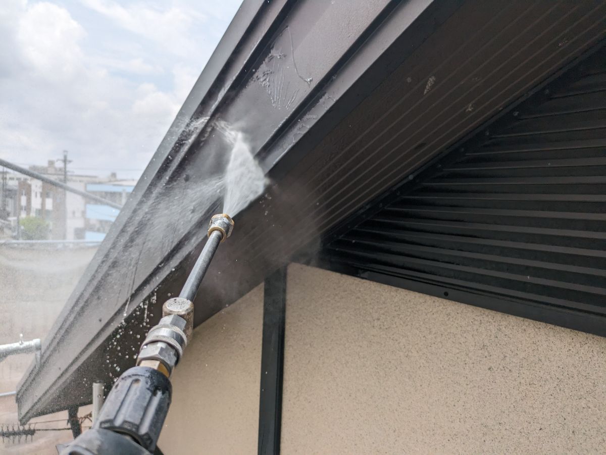 まずは業務用の高圧水洗浄機を使用して行う洗浄です。