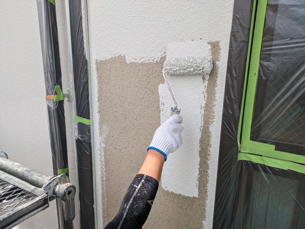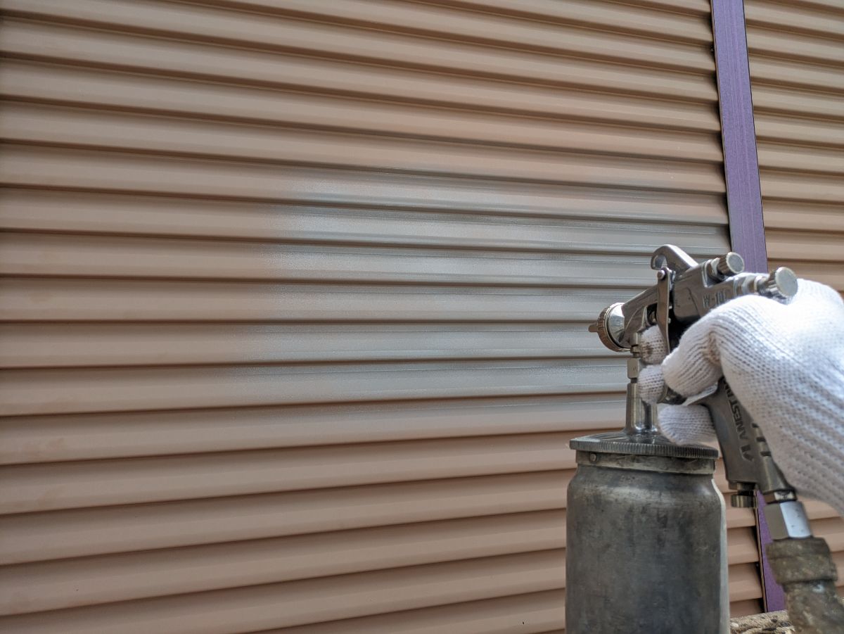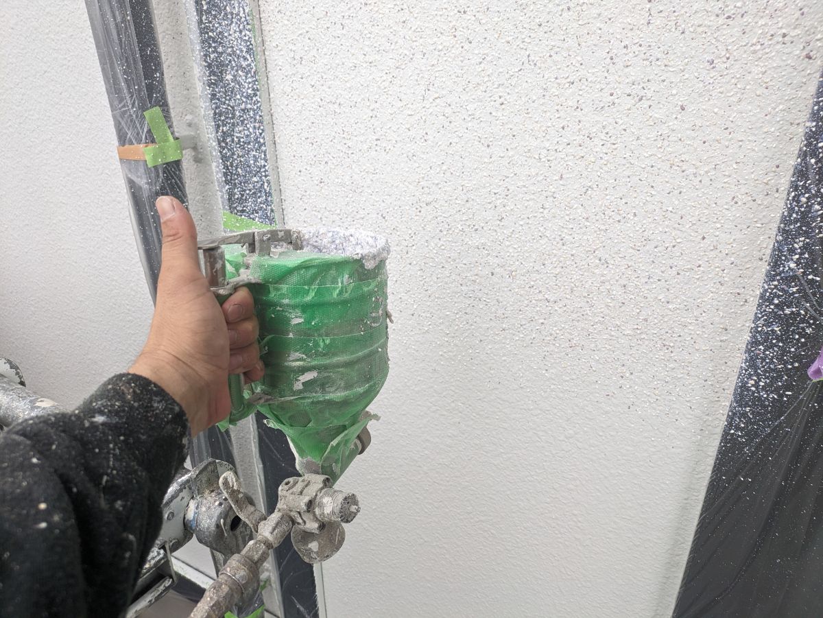均一に既定の膜厚を形成し、意匠性をしっかりと保つ為に吹き付けで塗装していきます。
