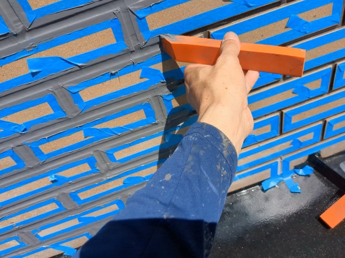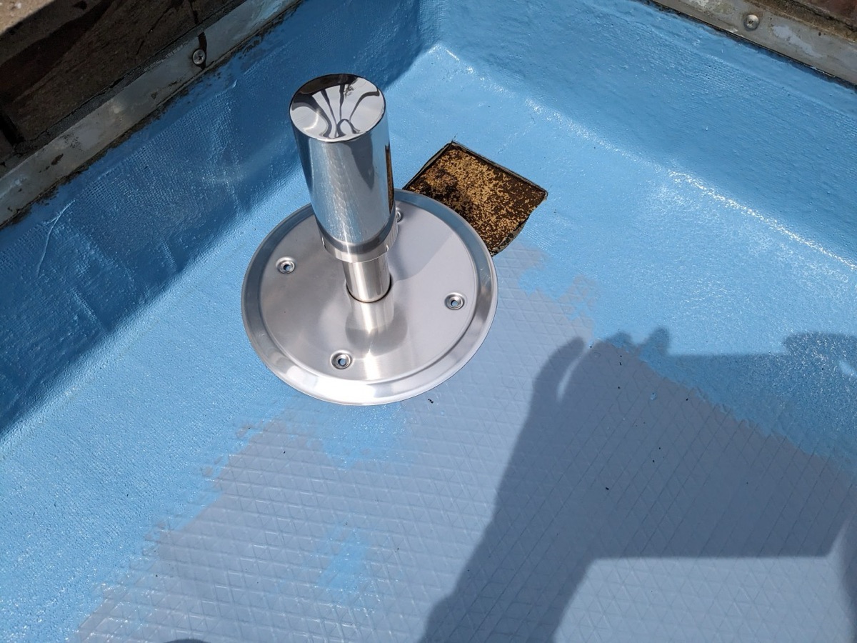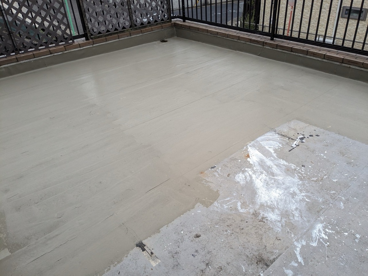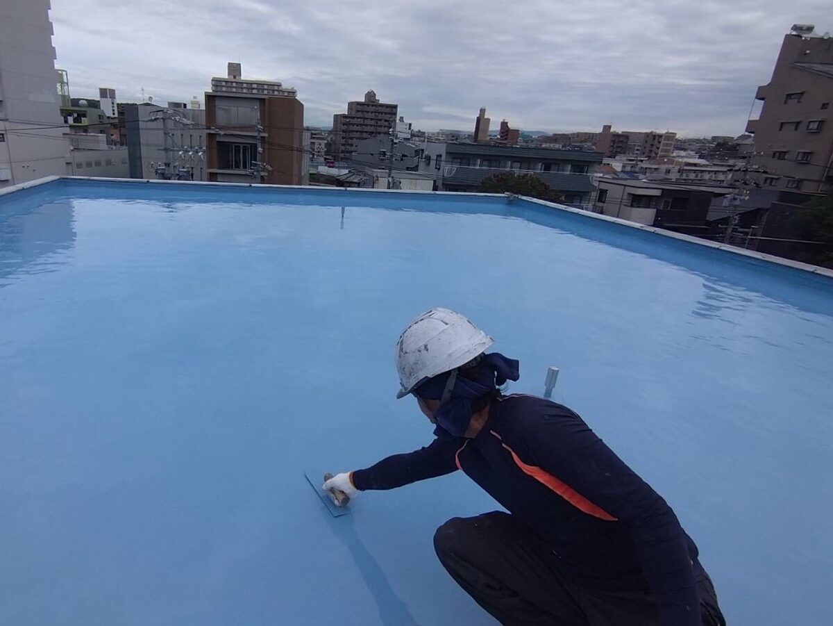 そこまでの処理をしっかり行ってからウレタン防水塗膜を施工し、その上からトップコートを施工し、防水工事は完了となります。