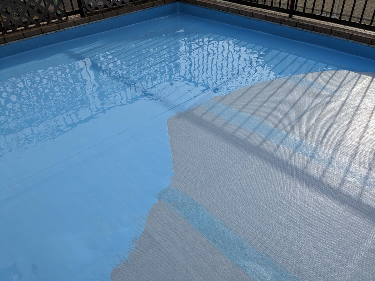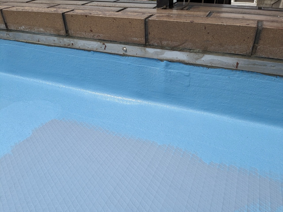 既存の防水層の上にウレタン塗膜防水を施工しました。