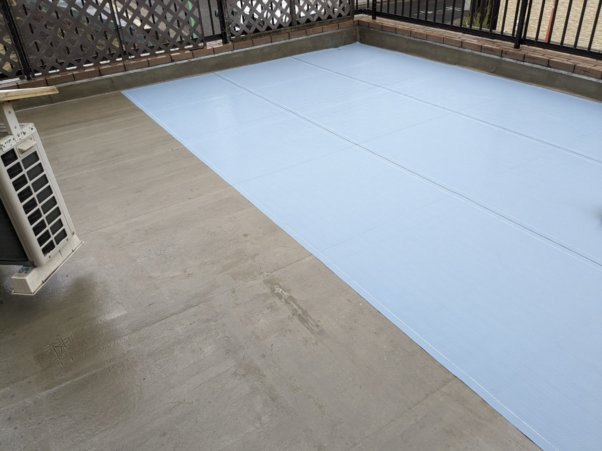 ガレージの屋上がテラスになっており、塩ビシート防水工事がされておりました。