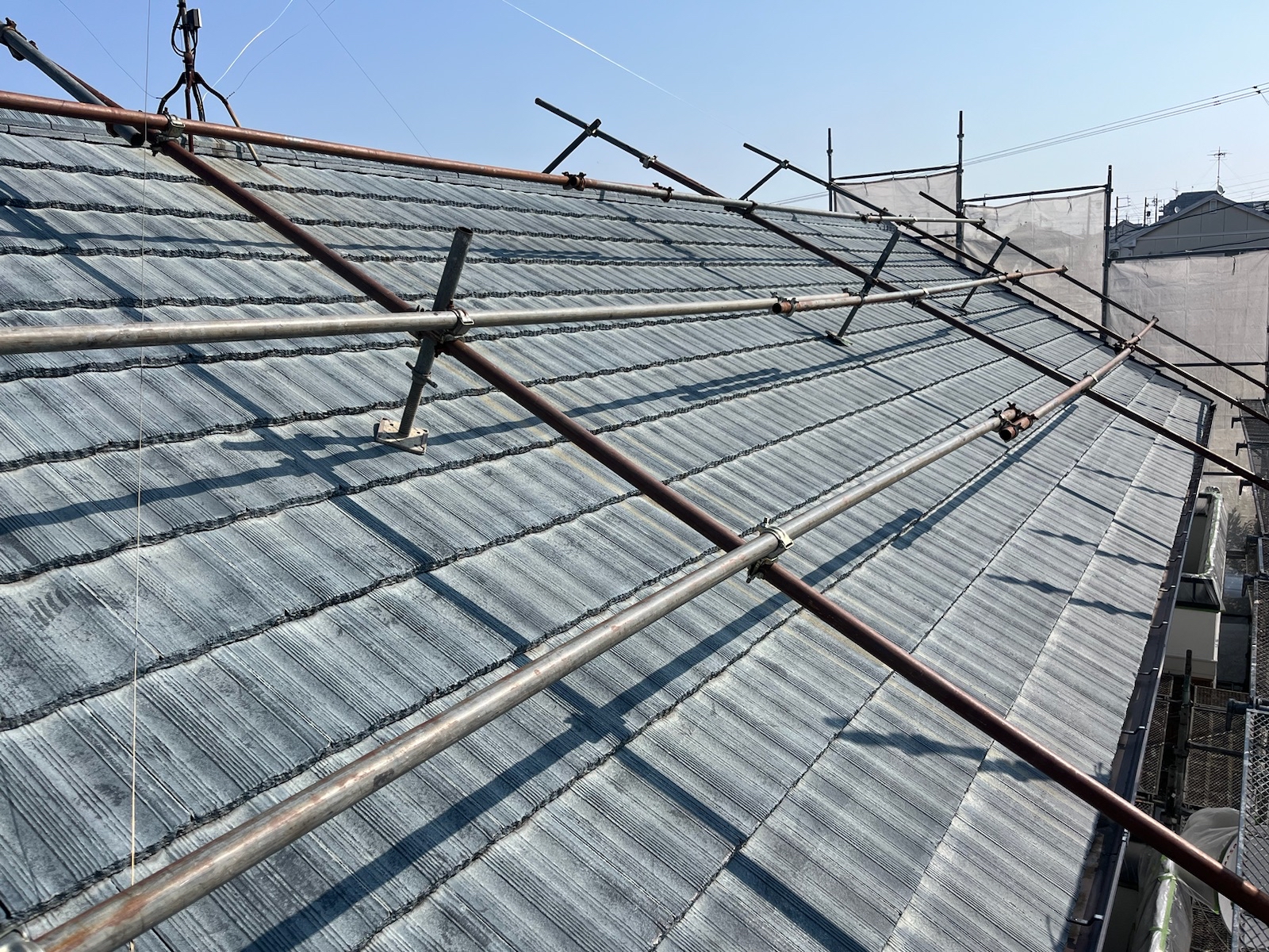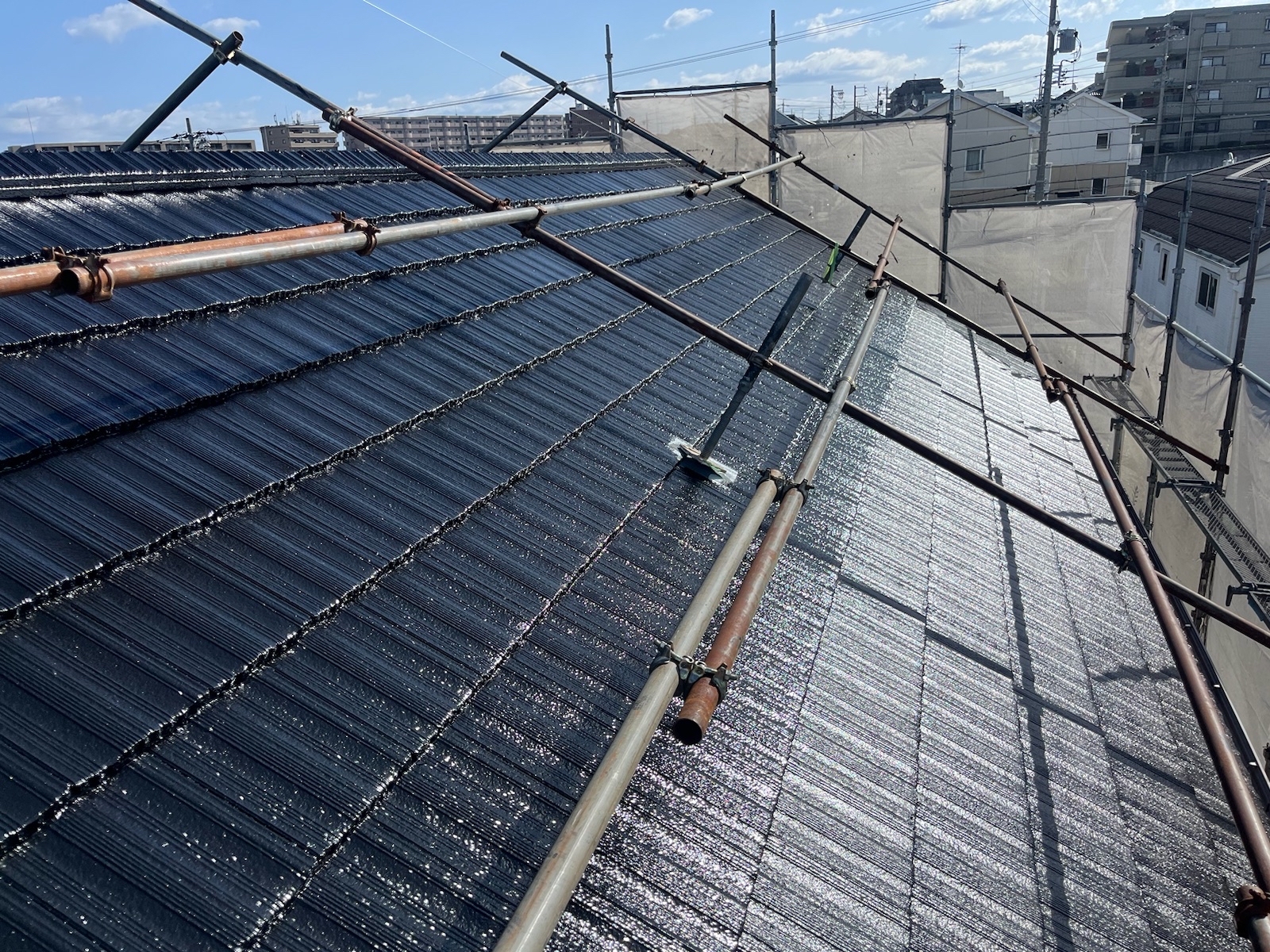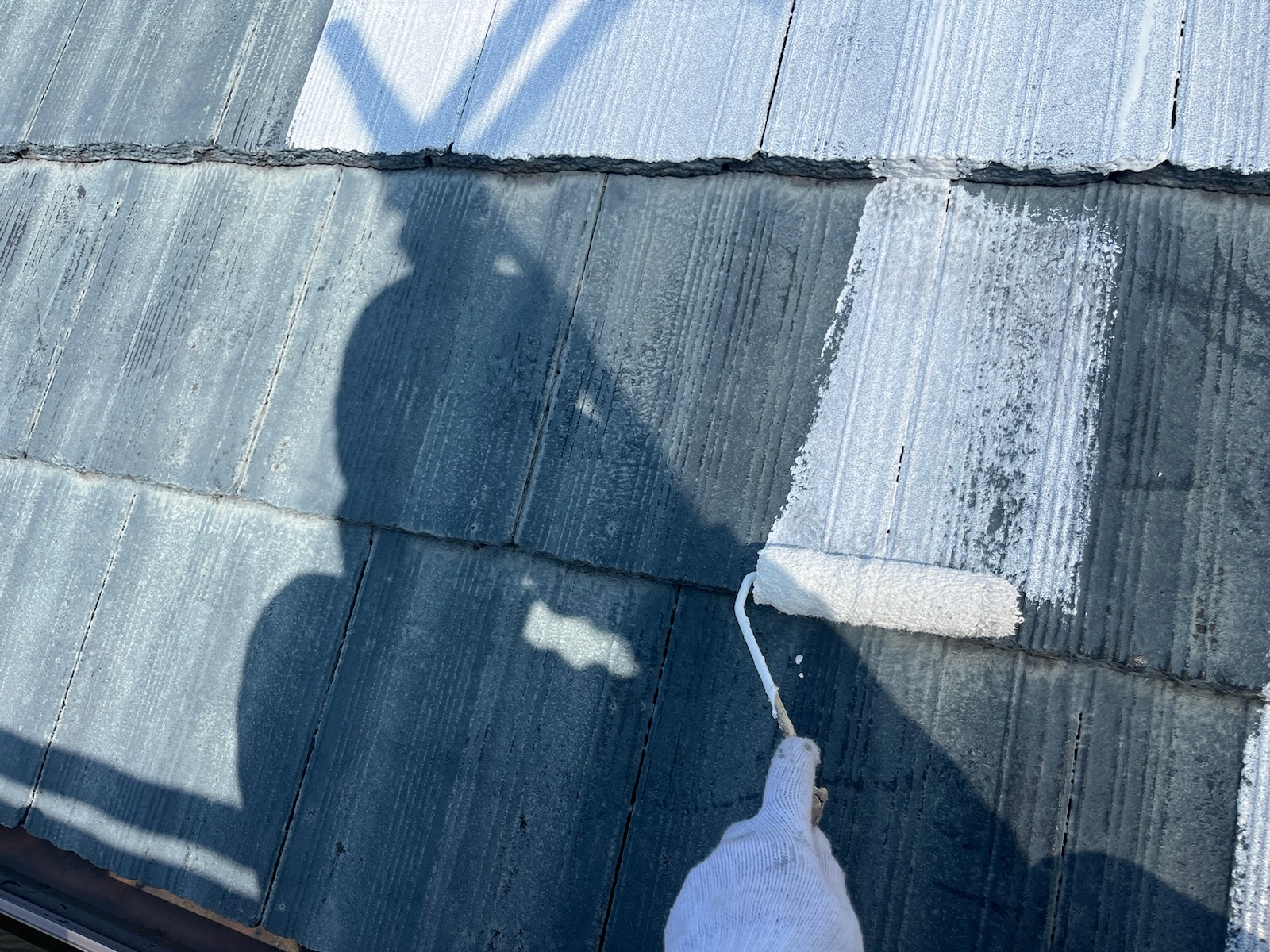 塗料を瓦が吸い込んでしまう為、表面に下塗りの効果が表れる様に、下塗りを2度施工し