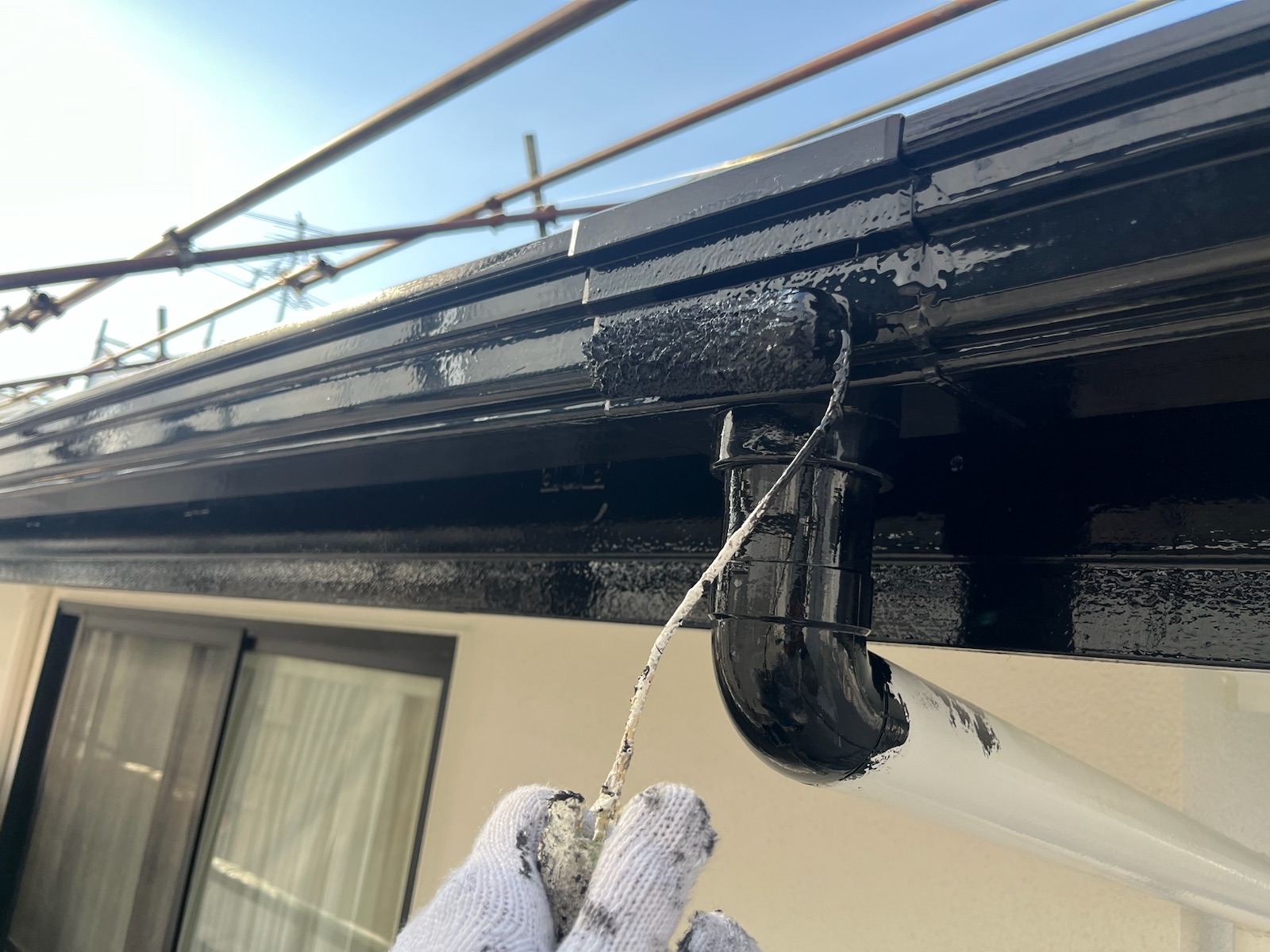 その他、庇やシャッターボックス、軒天上や雨樋も塗装工事を行いました。
