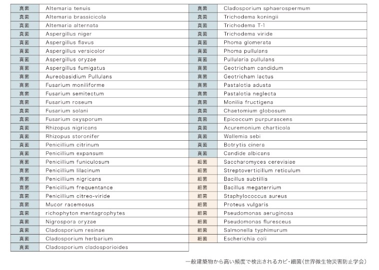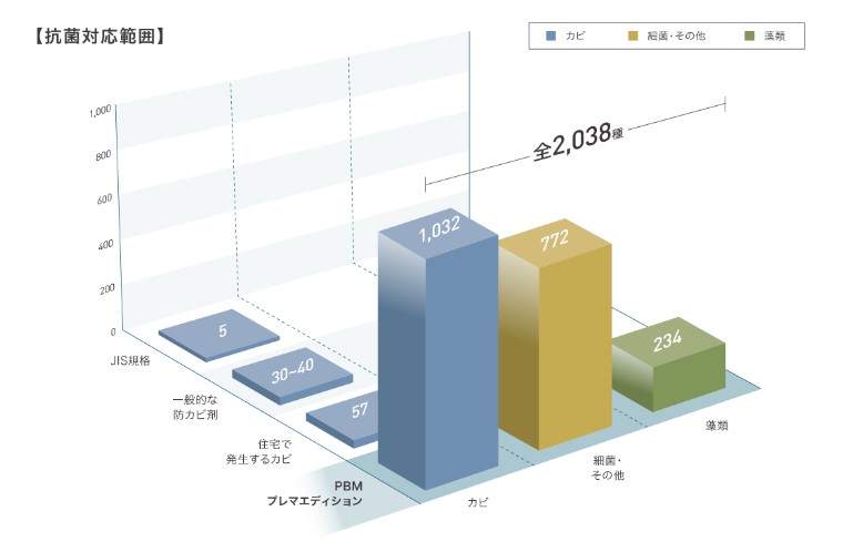 PBMは、米国デンバーにある世界微生物災害防止学会で確認された住宅で発生しやすい57のカビ・細菌に対して効果があるだけではなく
