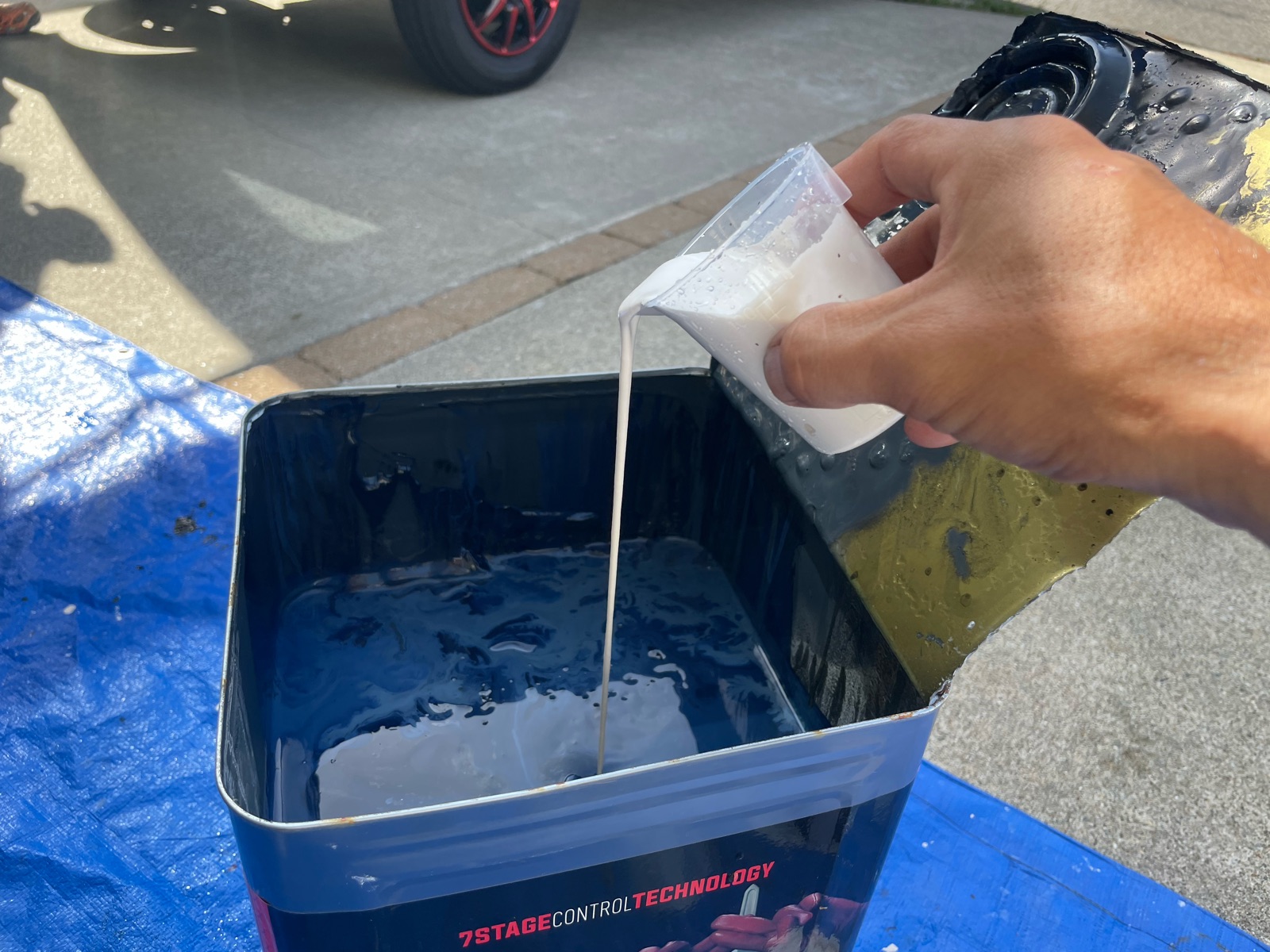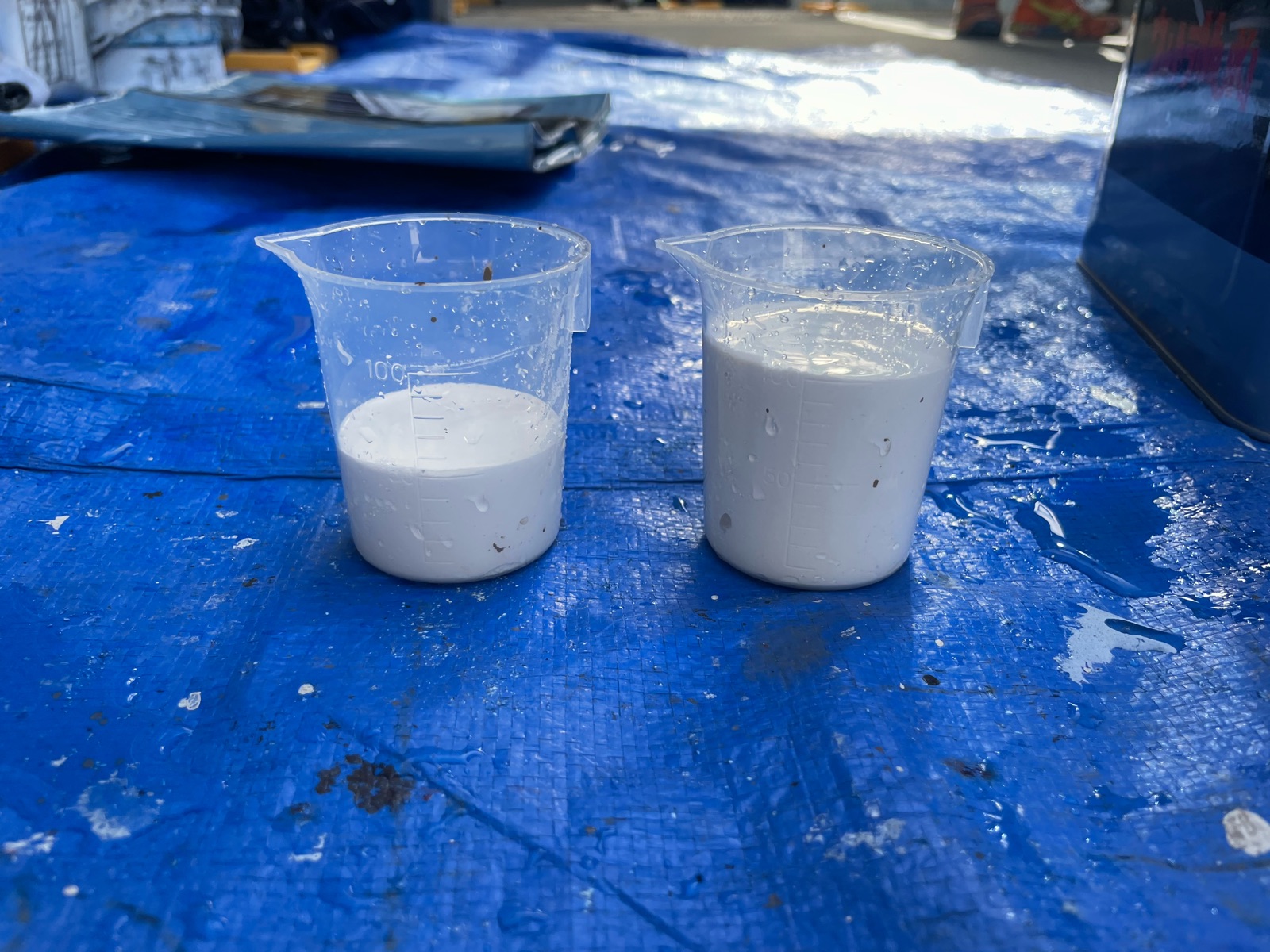 実際の現場でも、塗料の容量に対して1%を添加し攪拌した物を塗装していきますので