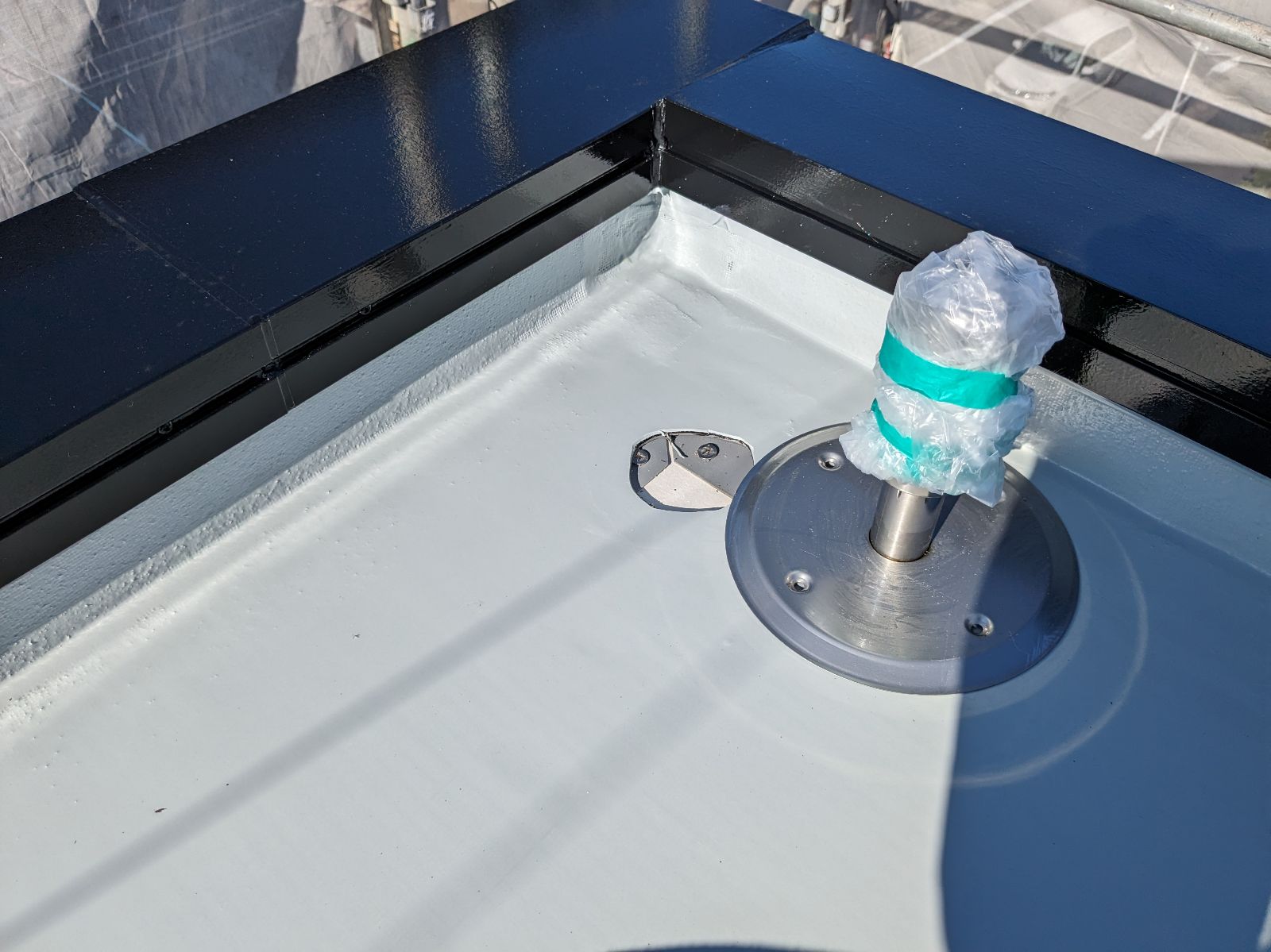 既存の防水層の上からウレタン塗膜防水工事を施工しました。