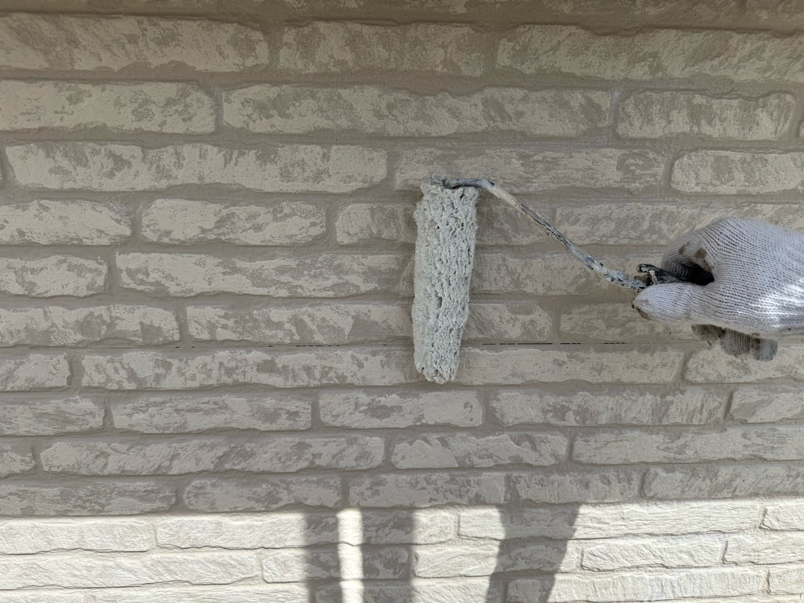 特殊なローラーを使用し、外壁の凹凸で2色・3色の模様をつけていきます。