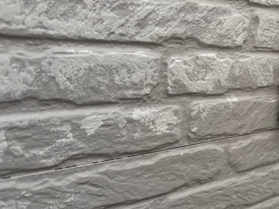 外壁の凹凸部の色が違う部分や目地の部分、多彩の模様がついている部分などが総じて一色になっていることが分かるかと存じます。