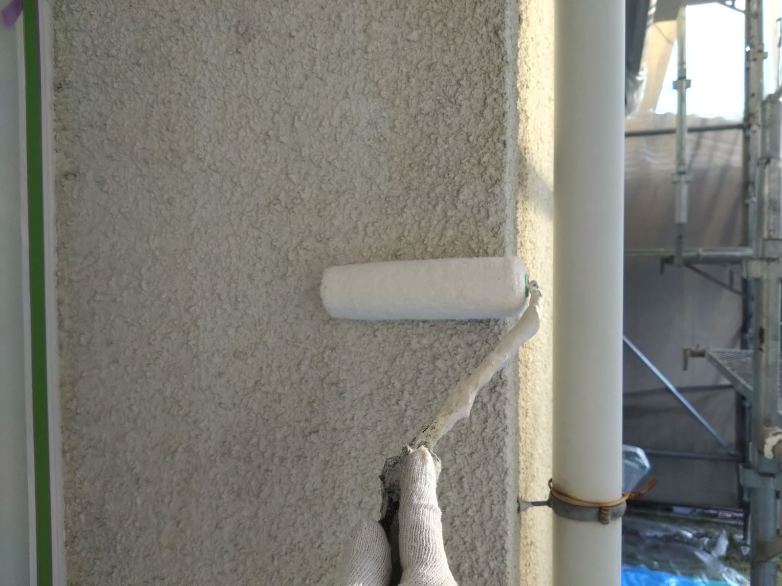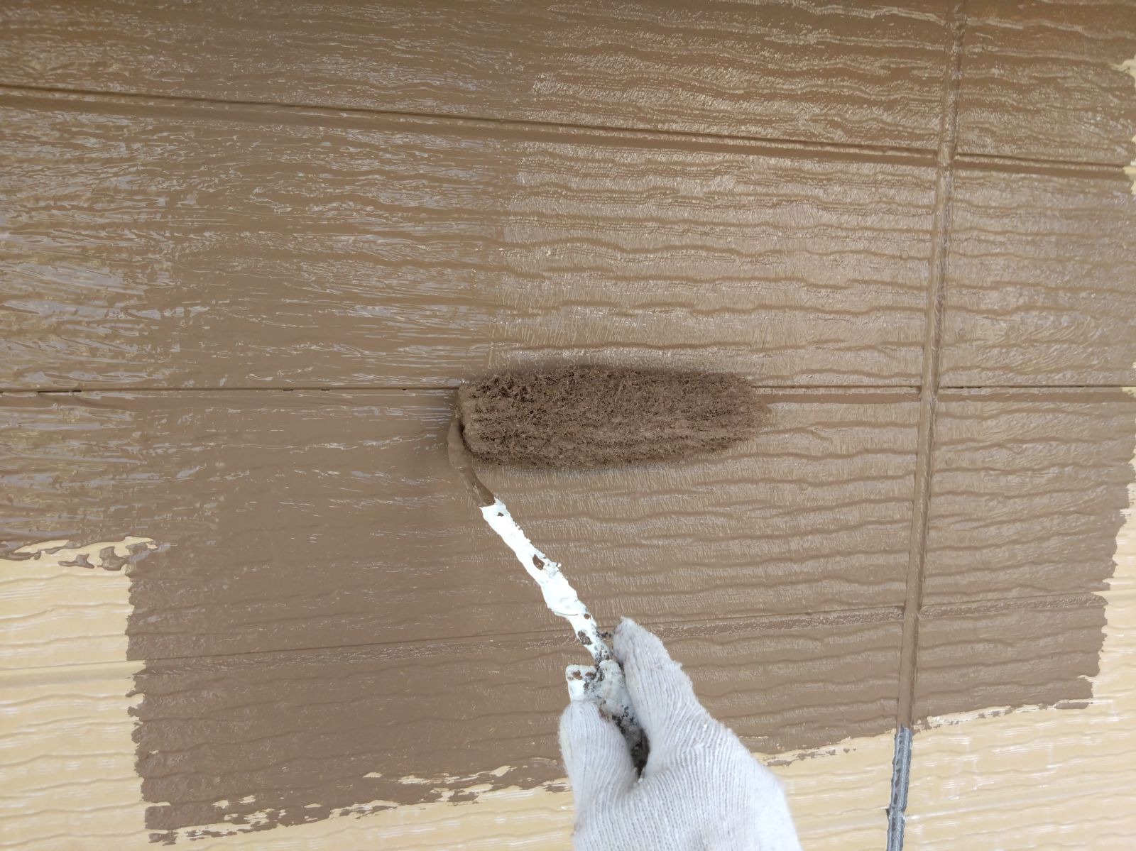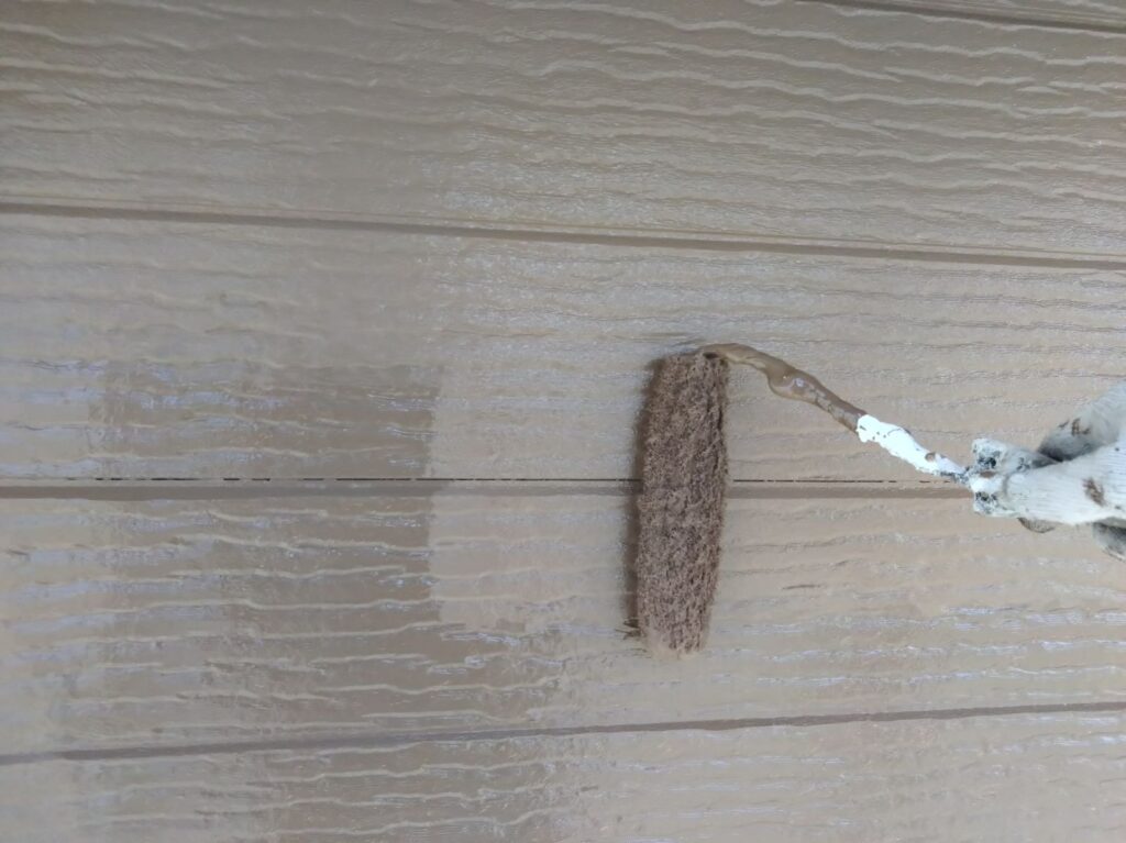 外壁塗装では、ひび割れを補修した後、下塗り→中塗り→上塗りの3回塗で仕上げていきます。