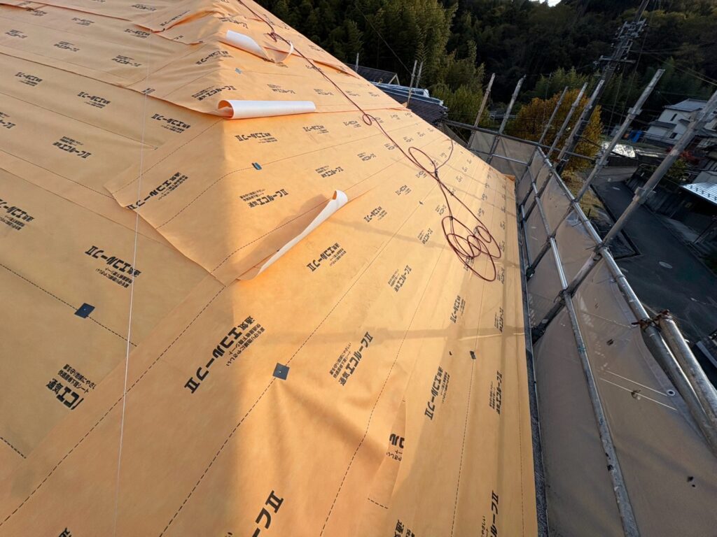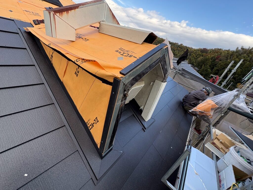 屋根は既存の屋根の上から新しい防水シートと屋根材を葺く、屋根カバー工法です。