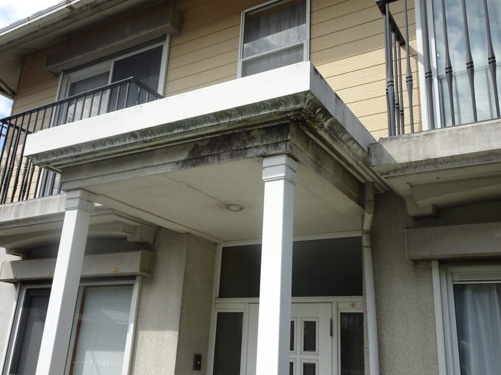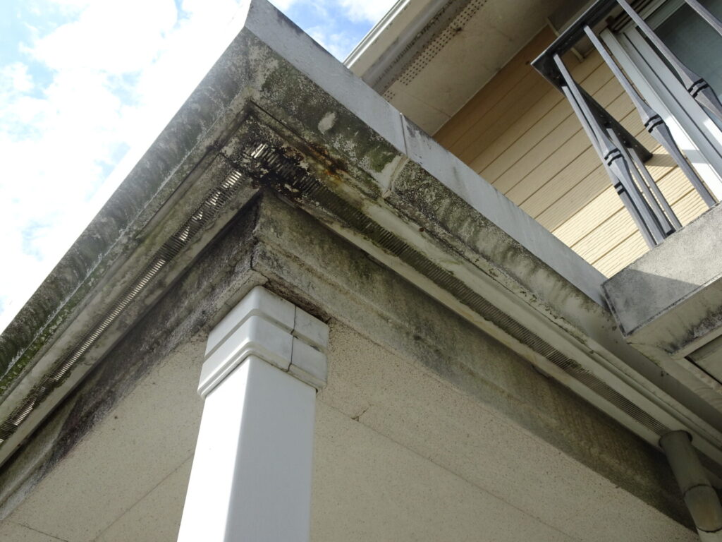 雨が当たらないようなところは黒ずみやコケが生えてきてしまっています。