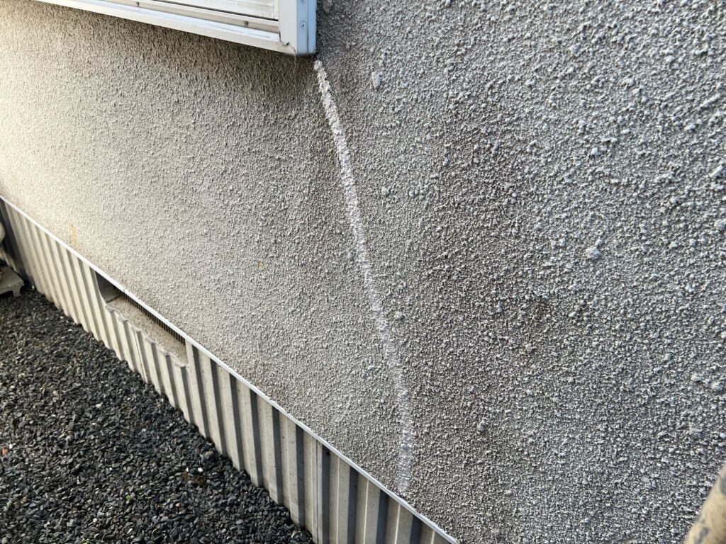 外壁にはひび割れが発生している所も見られましたので補修をしてから塗装工事をする必要があります。