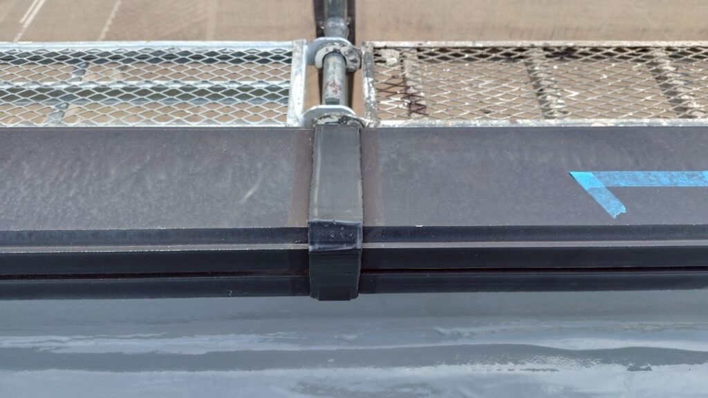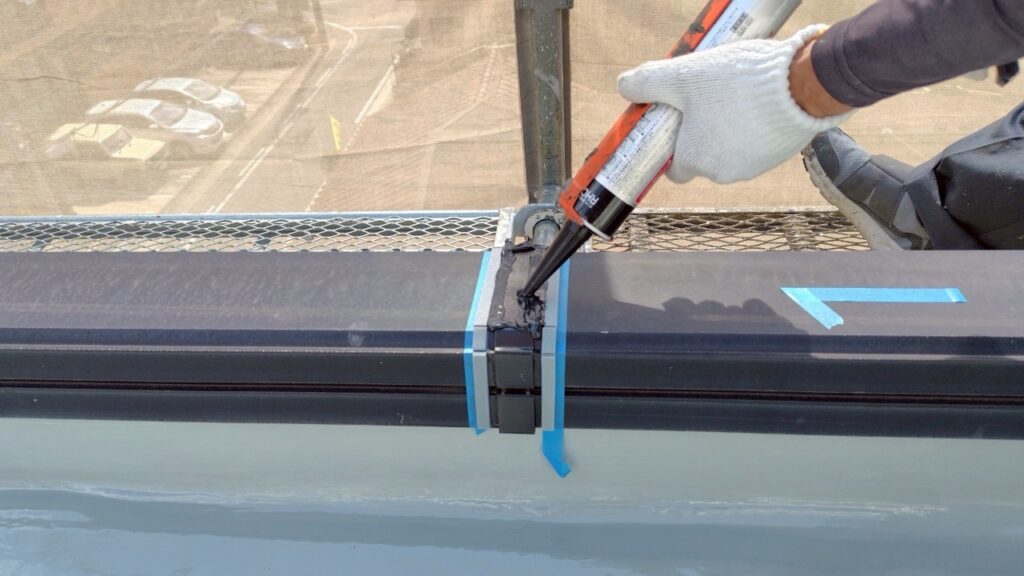 今回は笠木のつなぎ目に隙間が出来ないようにシーリングを施工しております。