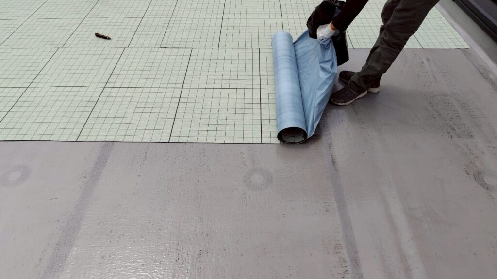ウレタン塗膜防水の中でも、通気緩衝工法という工法を選択し施工しています。