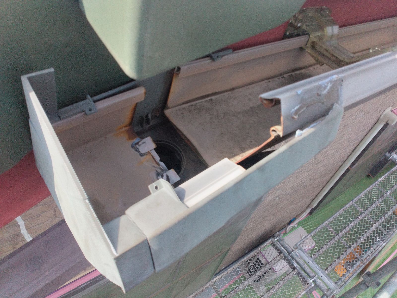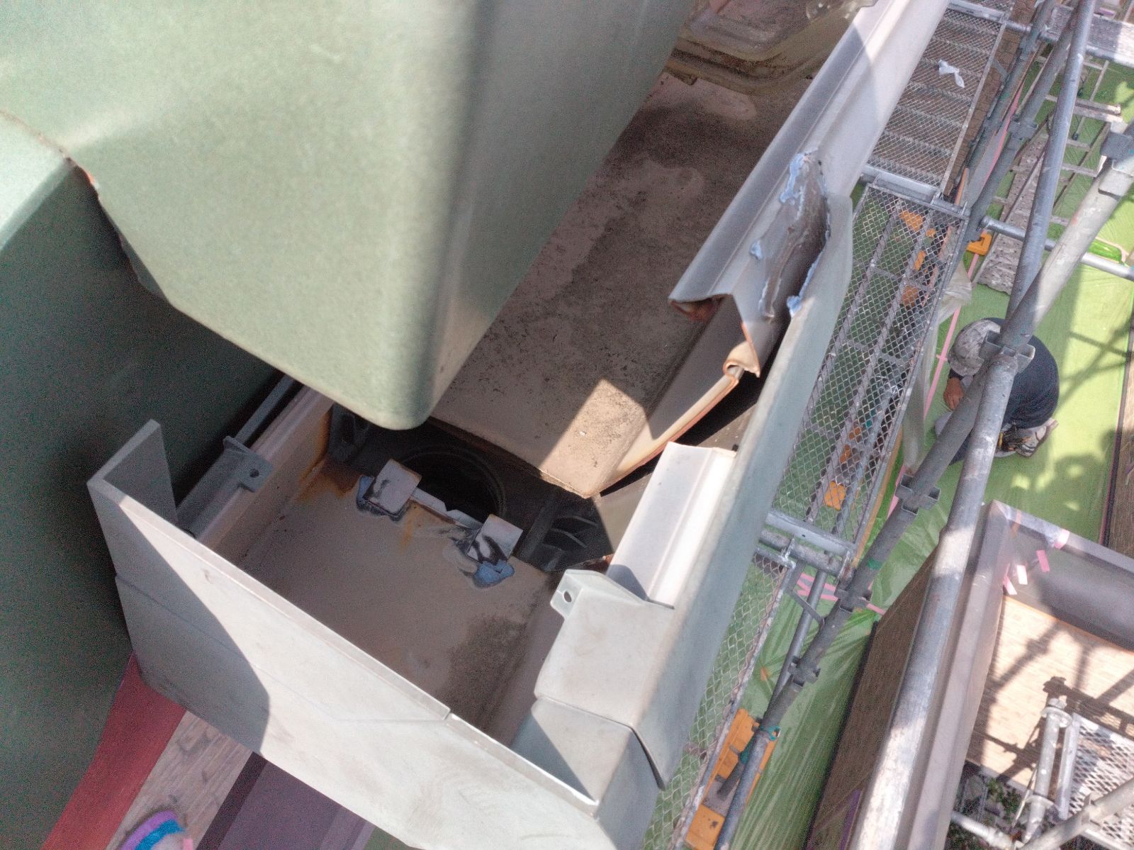 軒樋から竪樋に雨水を排水する事に支障が出ないように補修していきます。
