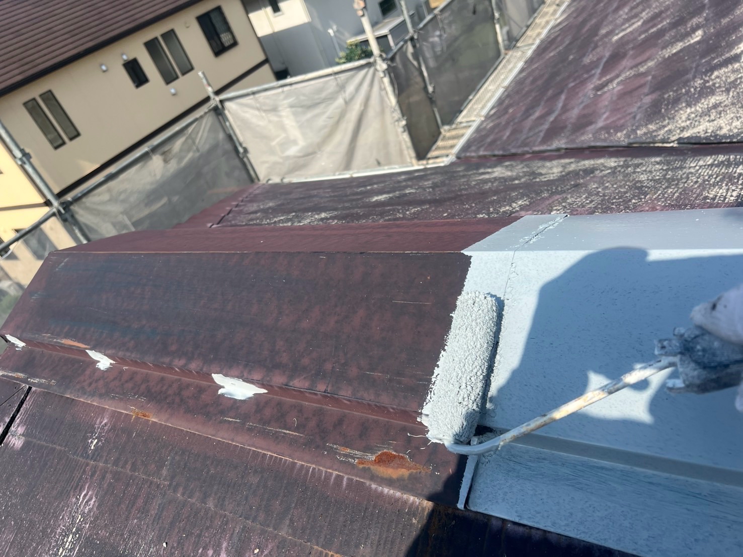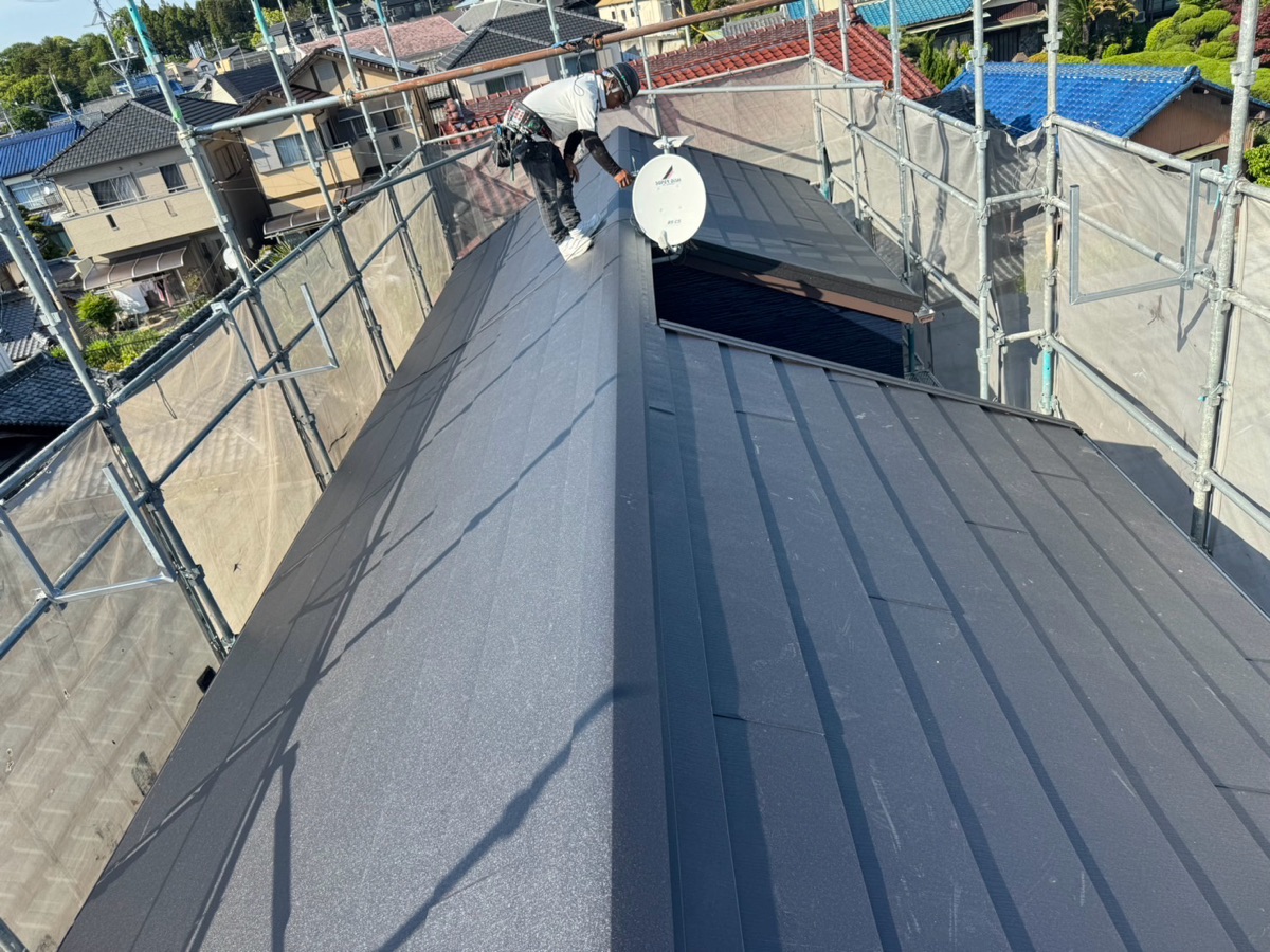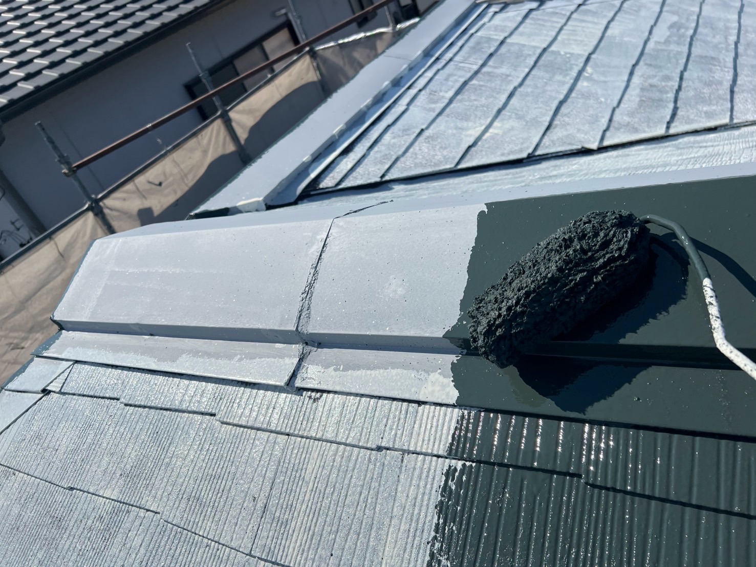 雨水を撥水し、紫外線から屋根材を守る為、塗装工事を行って参ります。
