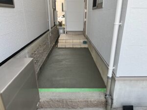 今回はその施工事例の一例として、外壁塗装に加えて土間コンクリート打ち玄関アプローチのタイル敷き施工をご紹介いたします。