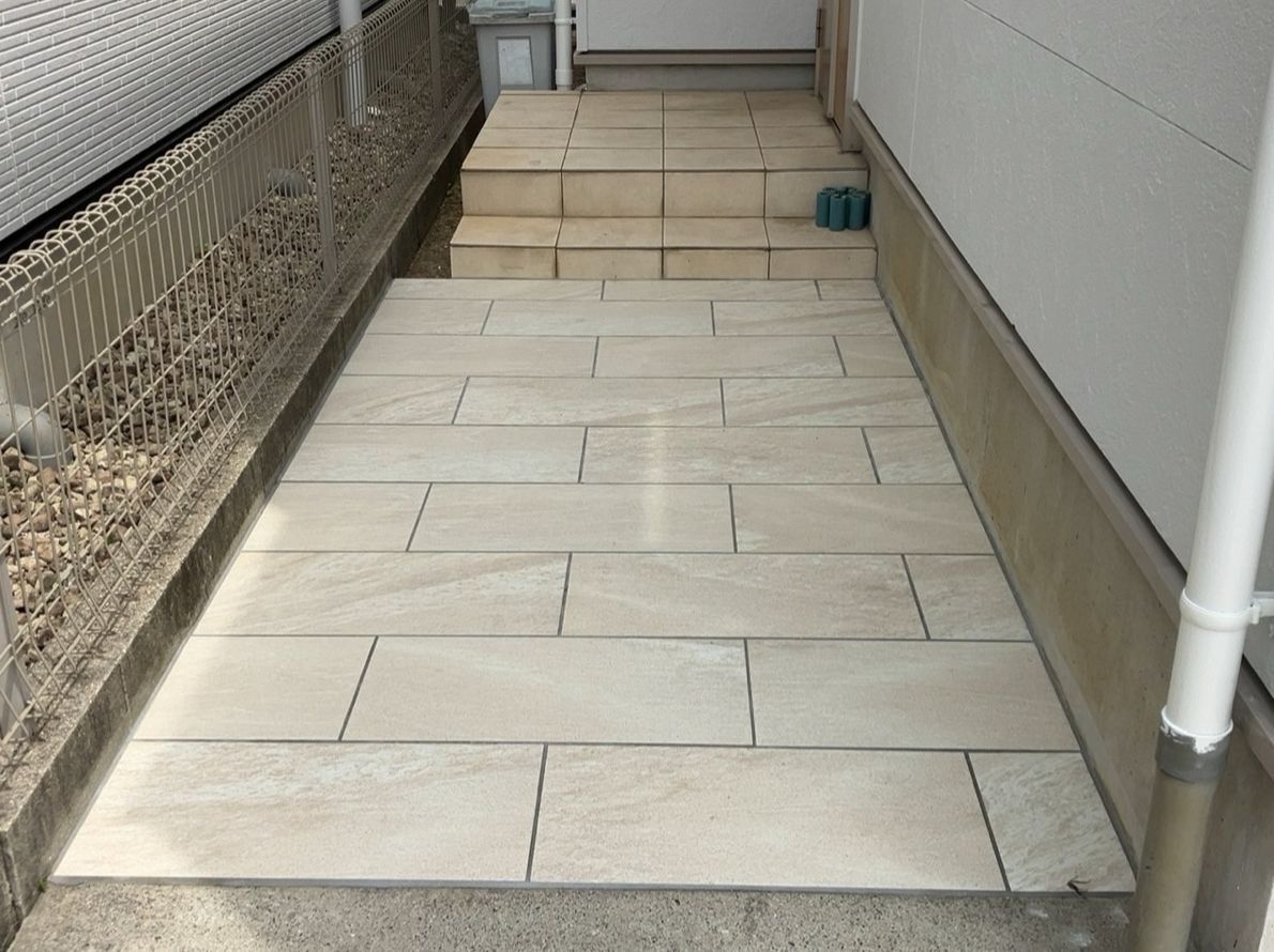 玄関までのアプローチ部分にタイルを敷いて、デザイン性と機能性を高める工事を行います。