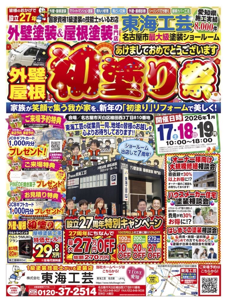初塗り祭!!!外壁塗装&屋根塗装専門店 東海工芸