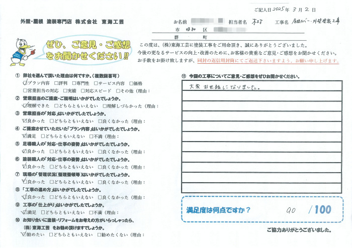 こちらこそ大変お世話になり、ありがとうございました。これからもお言葉を励みに頑張ってまいりますので、何かお力になれることがございましたらお声かけください。