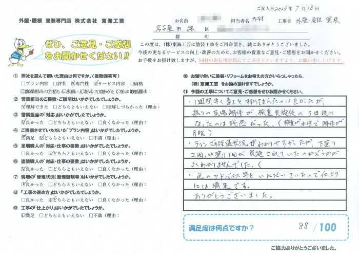 ・ラインでの経過状況がわかりやすかったが、下塗り2回、中塗り1回が実施されていたのかどうかがよくわかりませんでした。