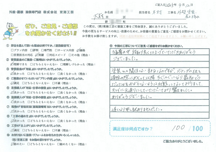 猛暑の中、段取り良く仕上げていただきありがとうございました。