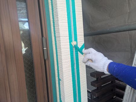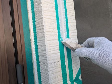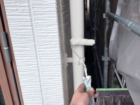 下塗りは外壁材に中塗り・上塗りの吸い込むことを防ぎ塗料を定着させ、表面劣化保護・強化する役割もある大事な工程です。