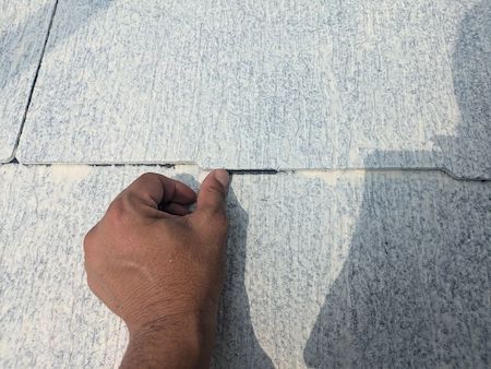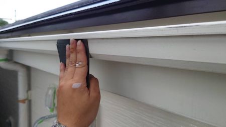 縁切り部材タスペーサーを差し込みます。塗装で塞いでしまった屋根と屋根の間に隙間をつくり、雨漏りや結露を防ぎます。